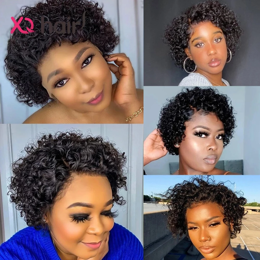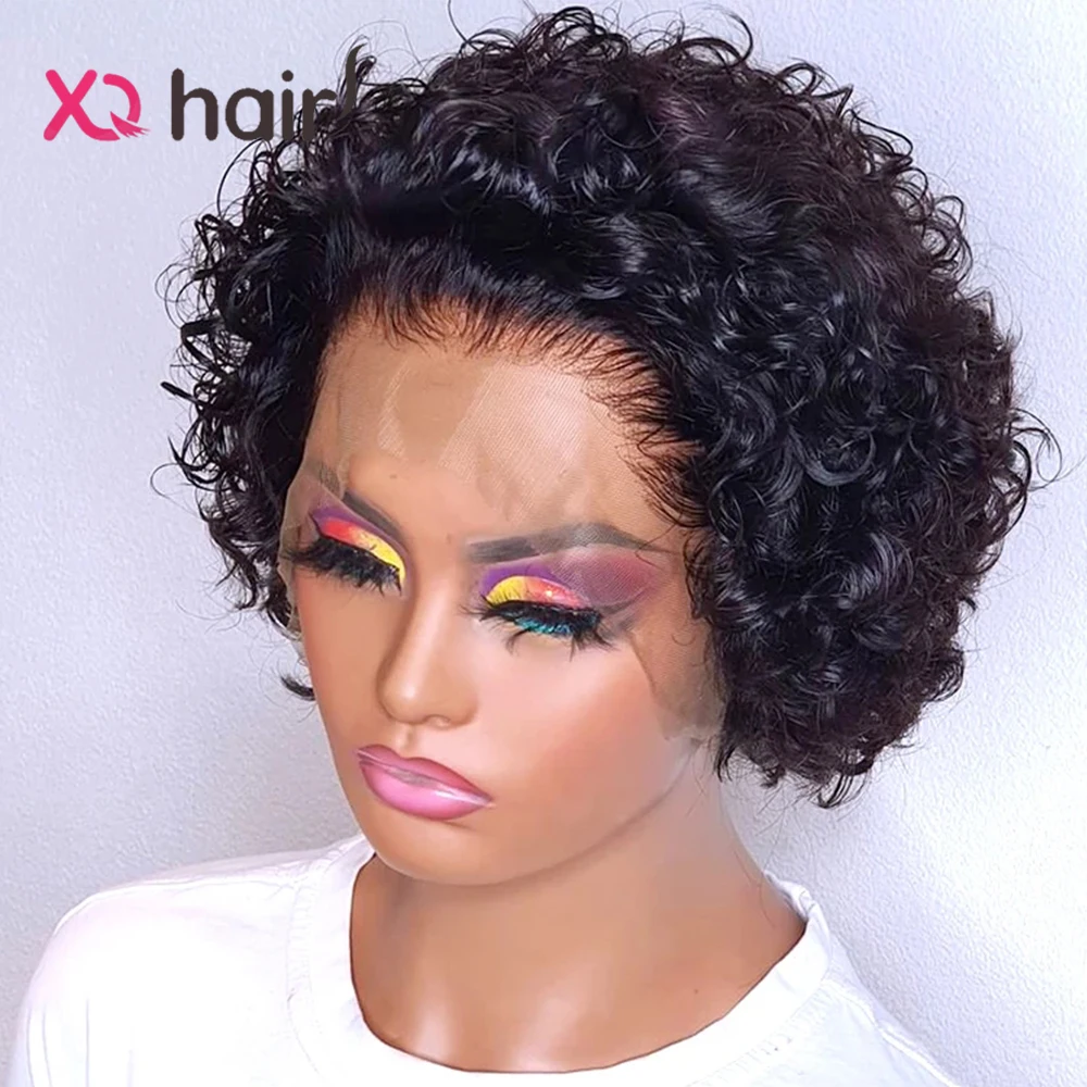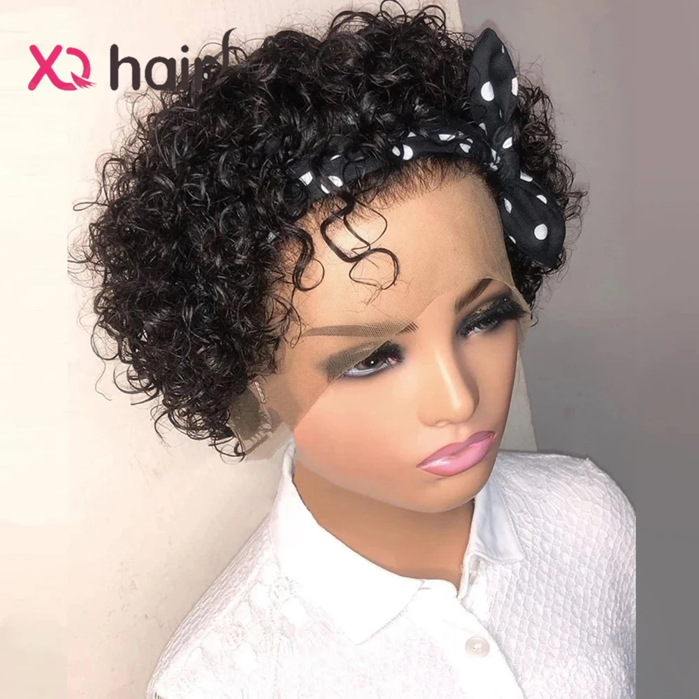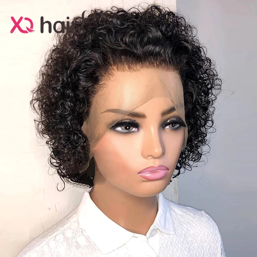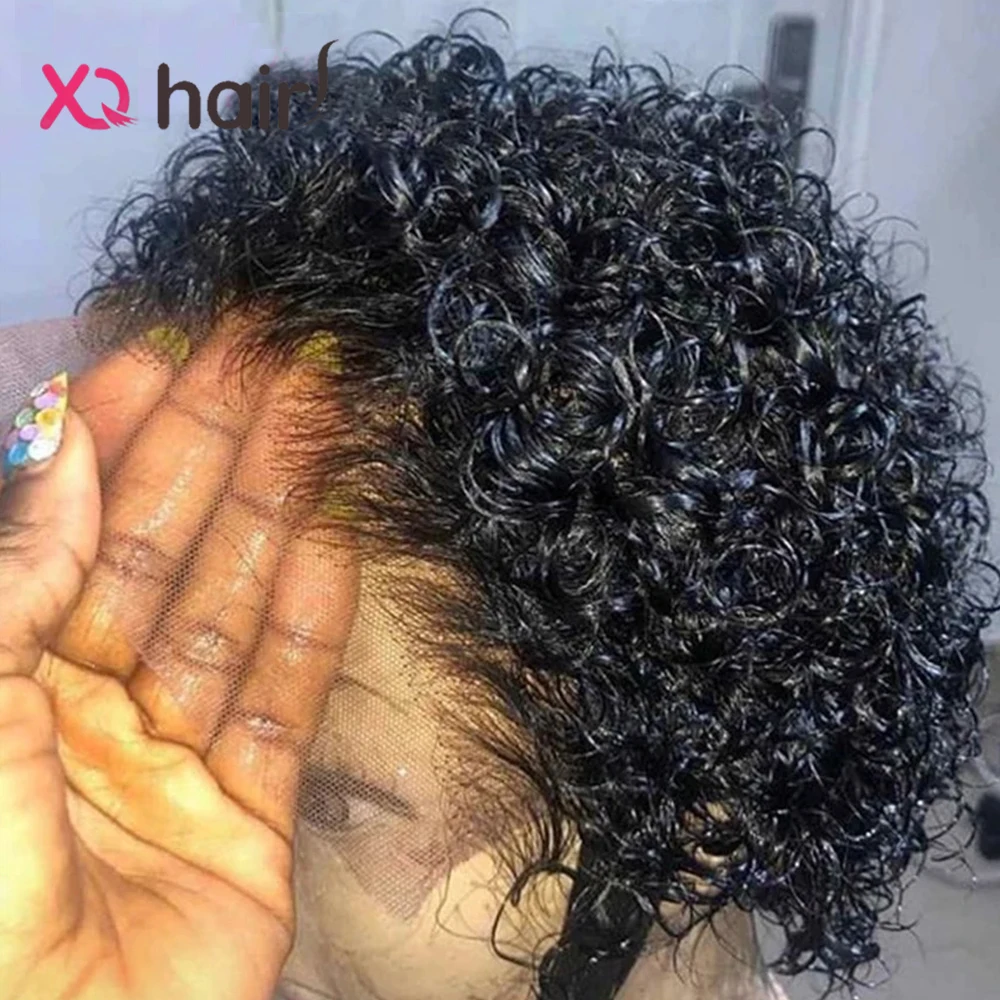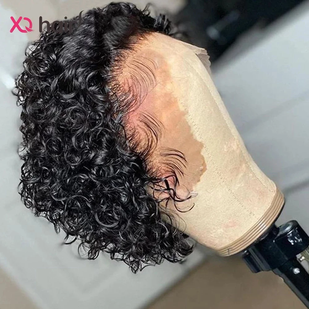 Парик XQ с вырезами фея, Короткие вьющиеся передние парики из человеческих волос, парики для чернокожих женщин, бразильский парик с водяными волнами, 13x1, прозрачные парики на сетке