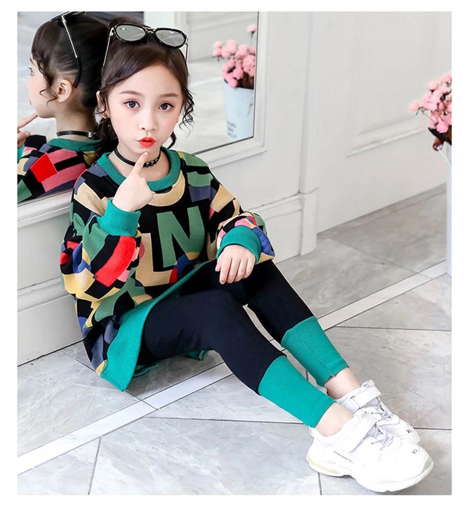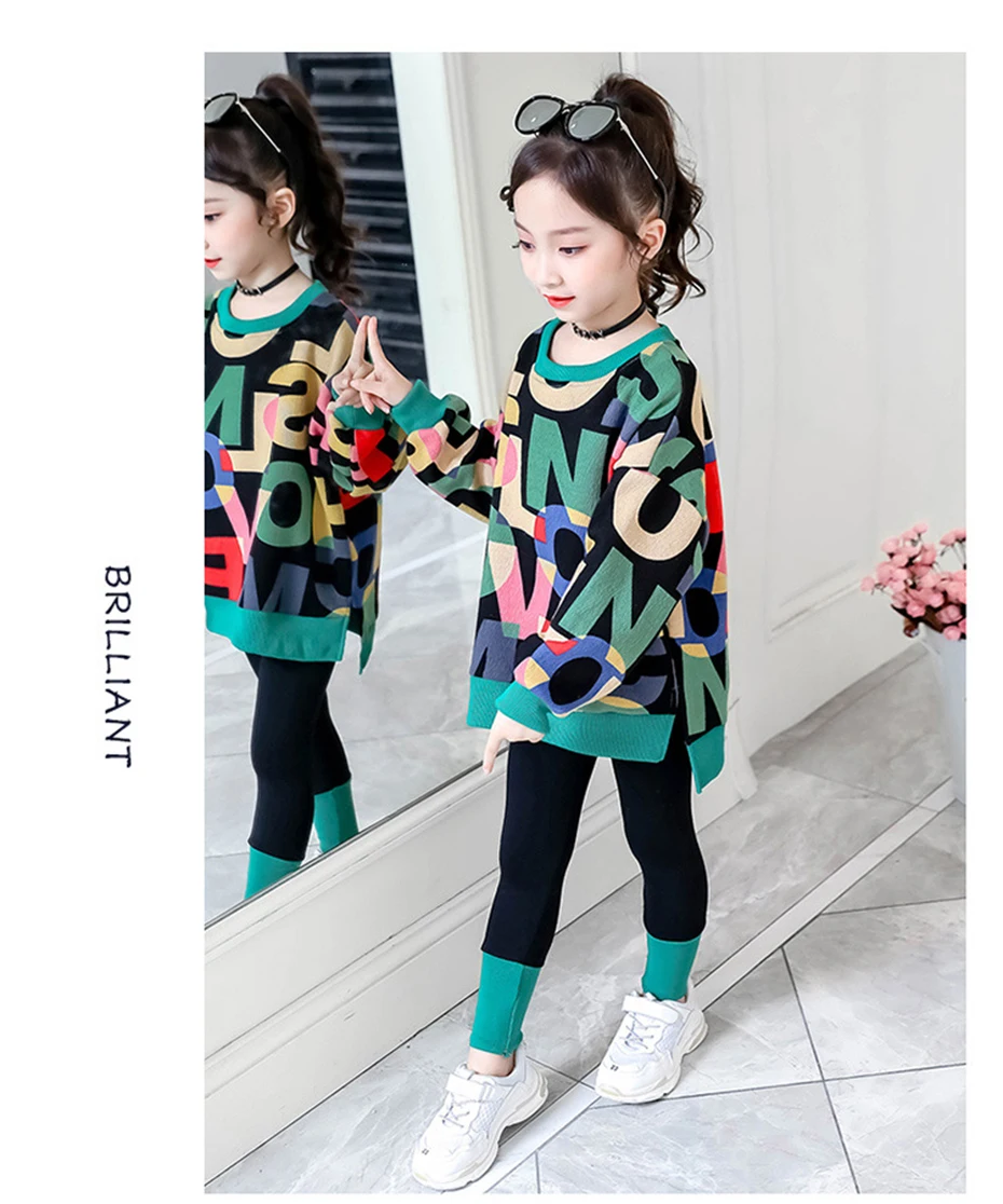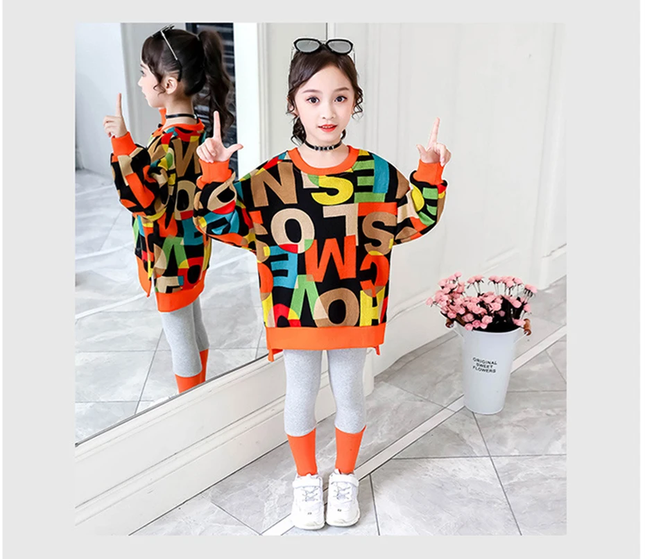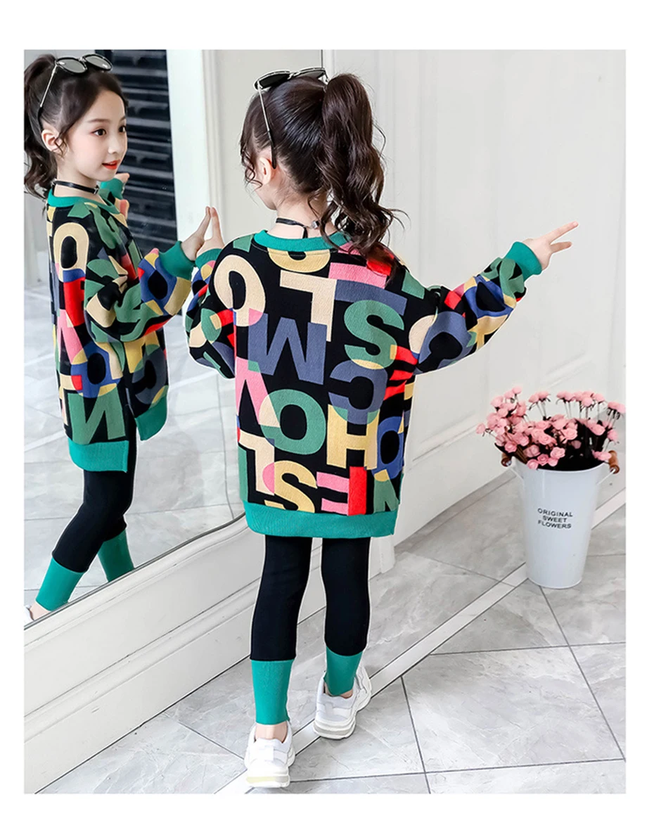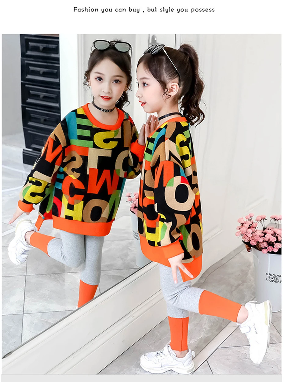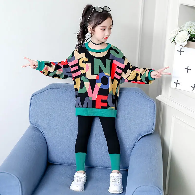 Осенний костюм для девочек, свитшот с надписью и штаны, комплект детской одежды, наряд для девочек, детские спортивные костюмы, одежда для девочек 5, 6, 7, 8, 10, 12