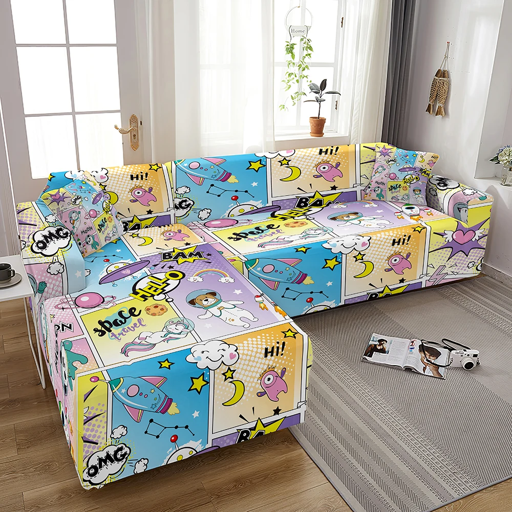 Лоскутный комикс эластичный чехол для кушетки L-образный шезлонг уг...