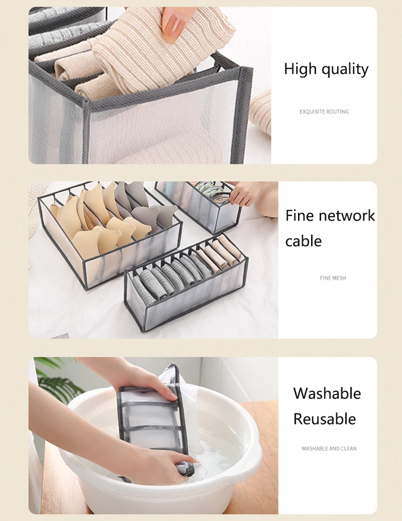 Коробка для хранения нижнего белья, органайзер для общежития, шкафа, складной ящик для носков, бюстгальтеров, одежды, разделительные коробки, органайзер для нижнего белья с 7 ячейками