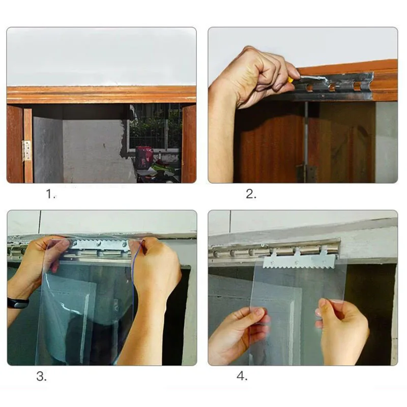 Материал ПВХ будет сокращаться при использовании в течение длительного времени, поэтому продукт, который вы получите, будет на 1-3 см больше, чем обычный размер.ПВХ занавес красивый и энергосберегающий, что может предотвратить звук, комаров, ветра, дождя, солнечного света.Подходит для использования в чистых помещениях, столовых входах, специальных магазинах с кондиционерами, супермаркетах, лестницах, ванных комнатах, входах в больницы и т. д.Это экологически чистый, прочный и не легко повредить.