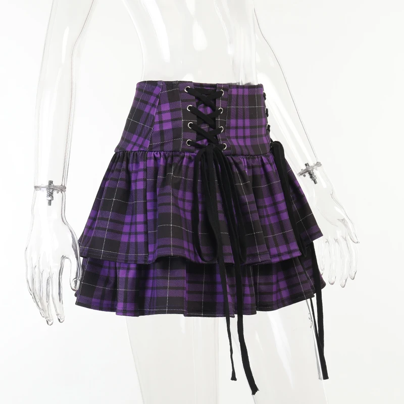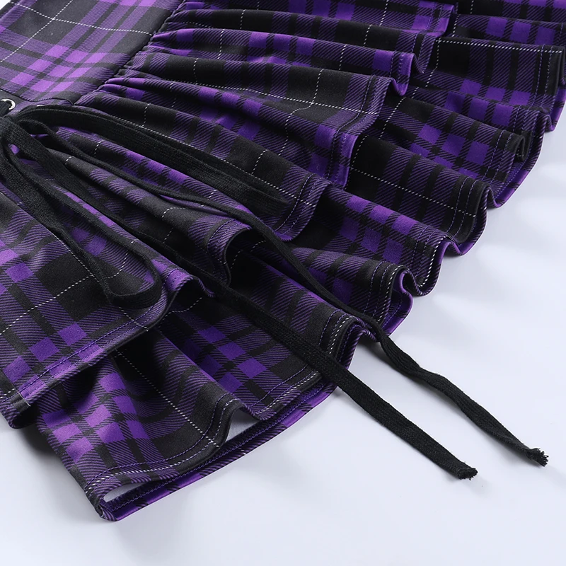 Женская плиссированная юбка, фиолетовая клетчатая мини-юбка, в готическом стиле, Y2K, осенняя, 2019