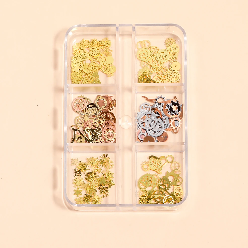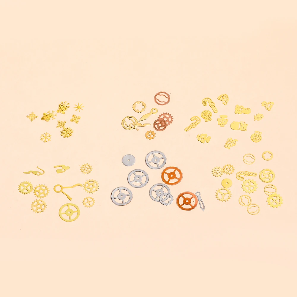 1 коробка из шести рамок, золотистые механические сверхтонкие шестерни, 3D Рождественские декоративные элементы, металлические аксессуары