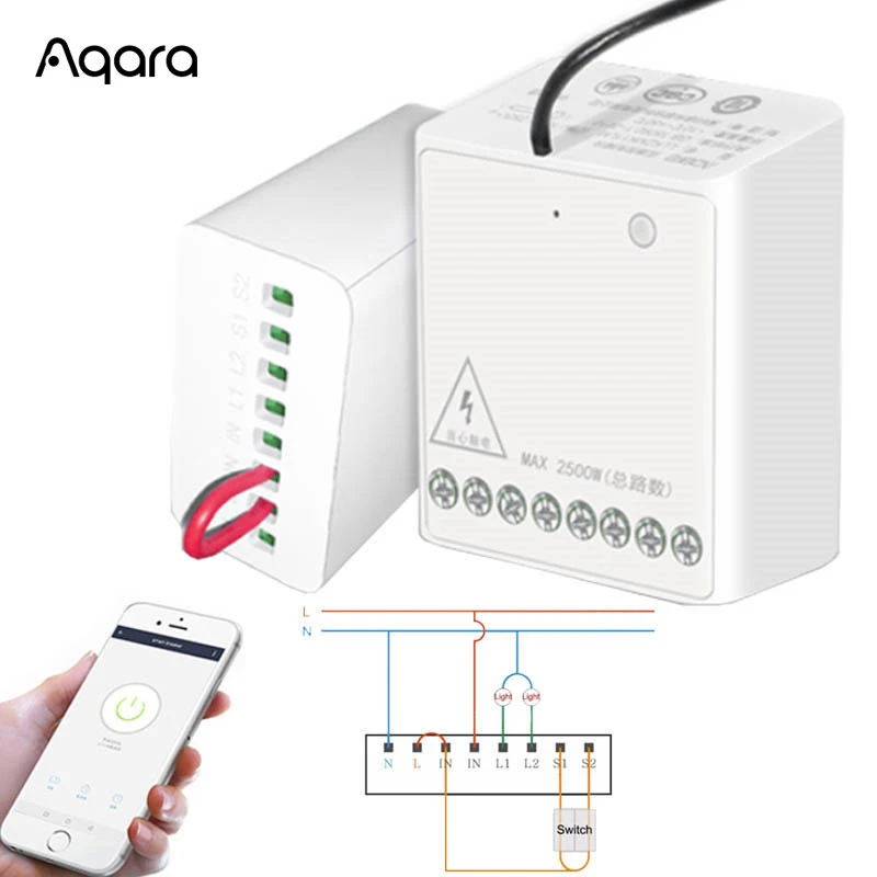 Aqara двустороннее реле LLKZMK11LM двухполосный модуль управления беспроводное реле управления Лер работа для умного дома приложение домашний комплект модуль управления