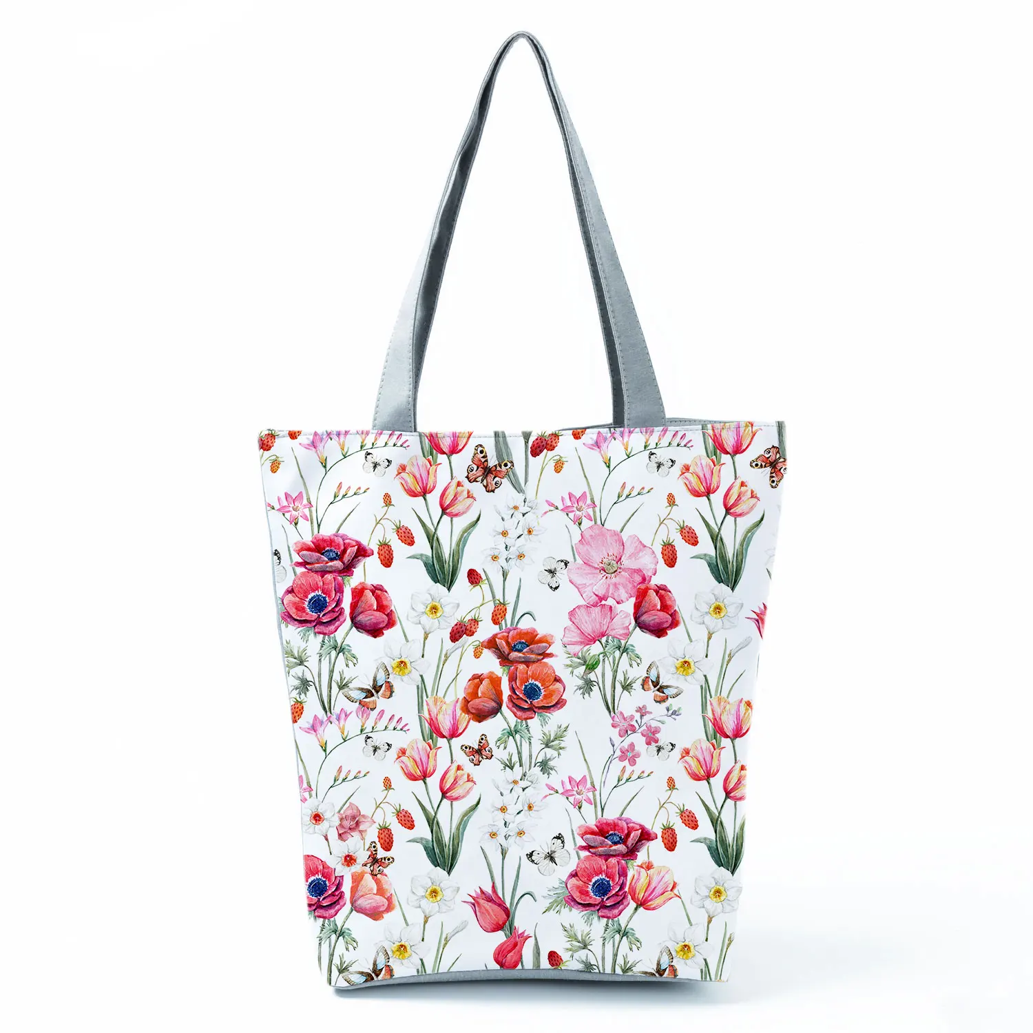 Красные цветочные сумки для хранения, модные женские многоразовые сумки большой вместимости, портативные сумки через плечо, хит продаж, дорожная пляжная сумка