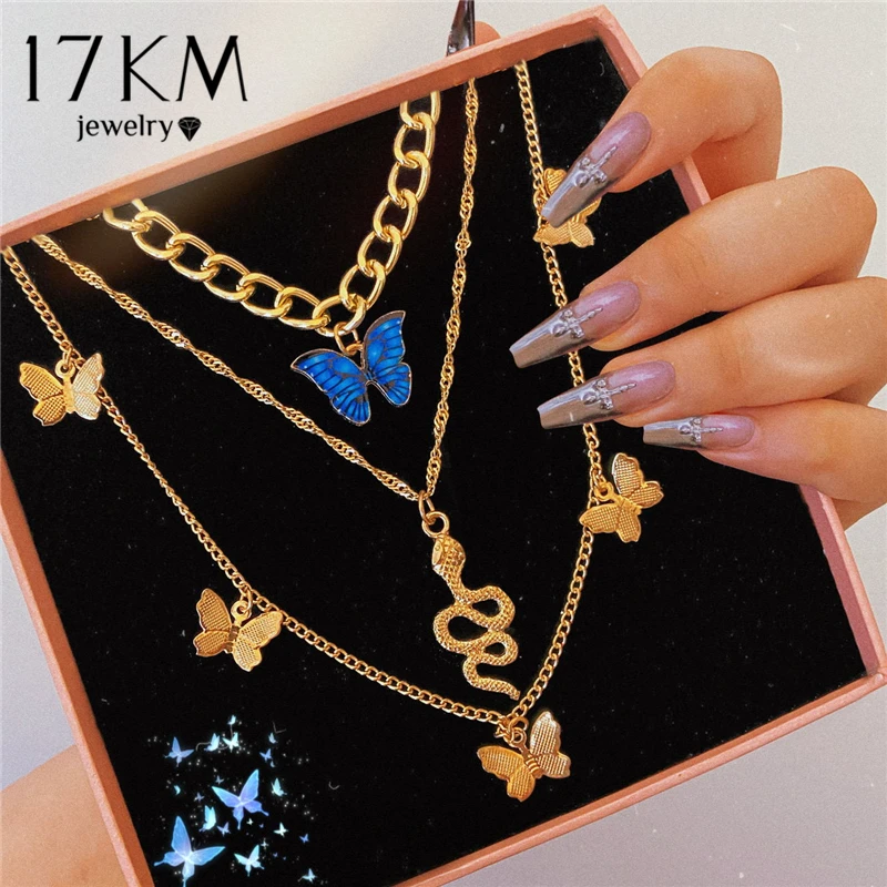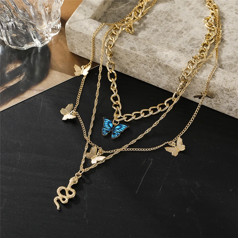 Богемные многослойные змеиные бабочки ожерелье для женщин Мода Золотая цепь Choker Ожерелья подарки Ювелирные изделия