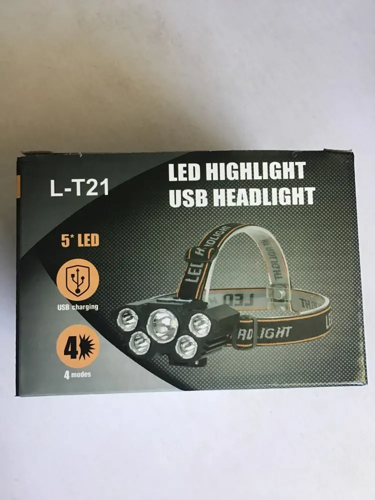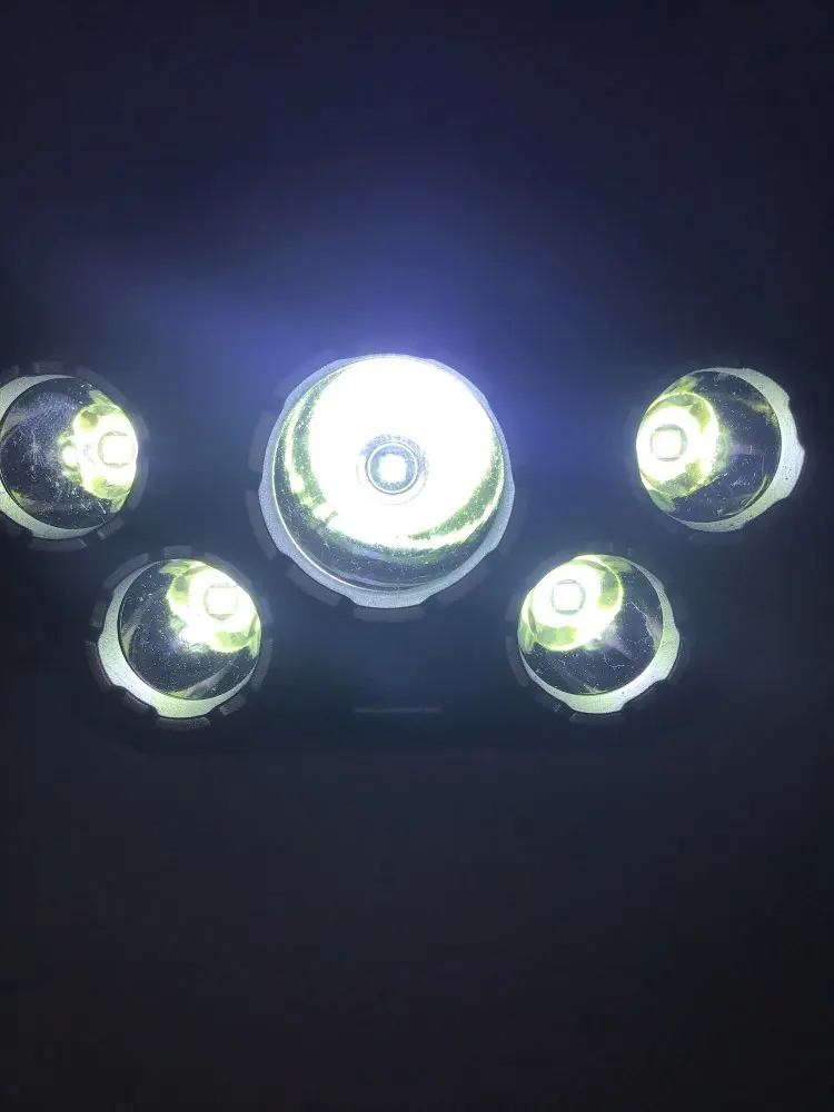 Фонарик с зарядкой по Usb, встроенный аккумулятор, 5 светодиодов, мощный Налобный фонарик, для ночной рыбалки