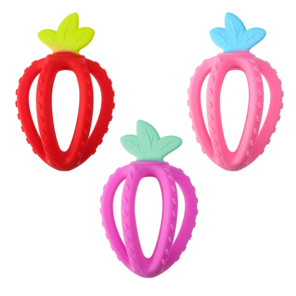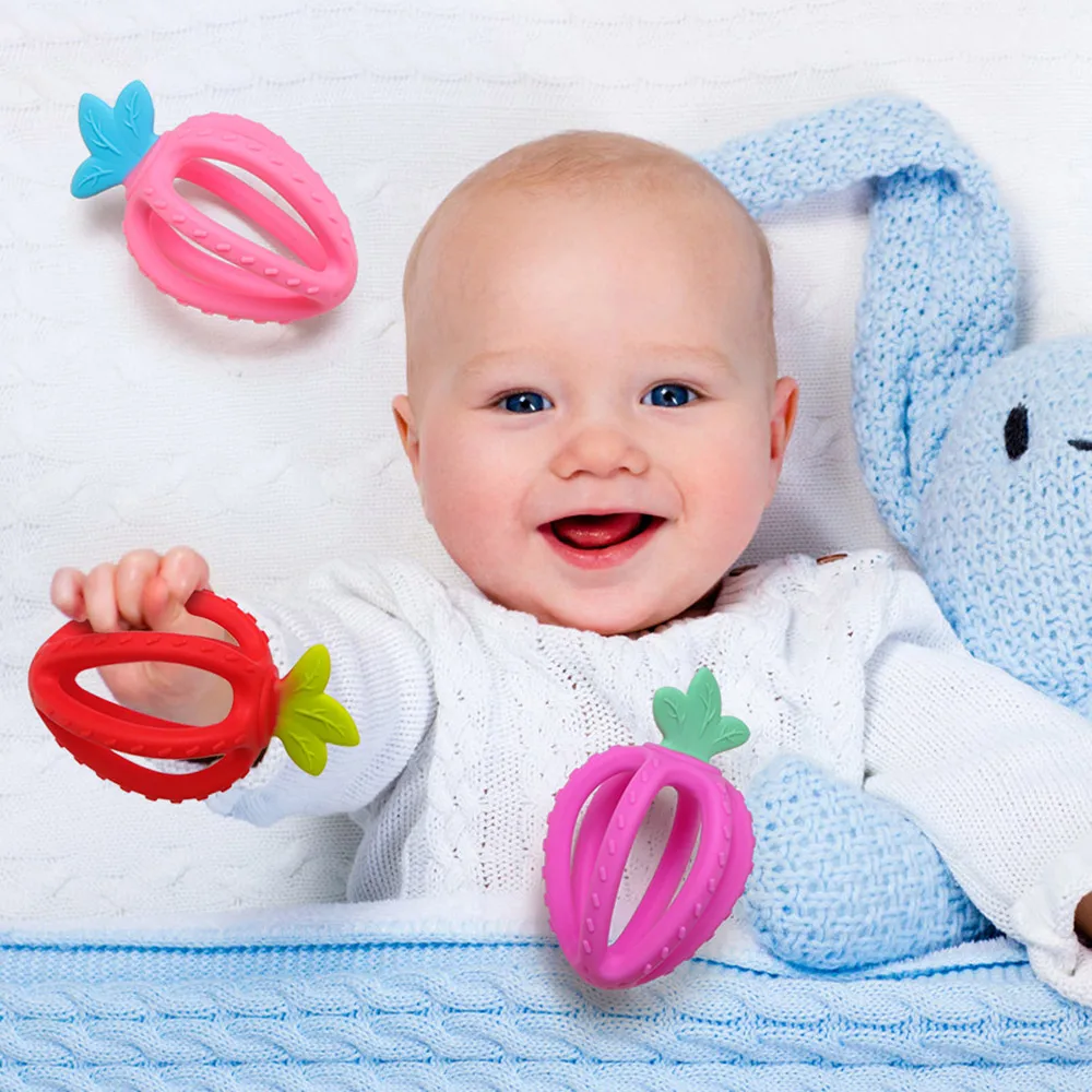 3. Эти силиконовые детские игрушки обладают мягкими текстурированными поверхностями, которые массируют десны при проскальзывании зубов.
