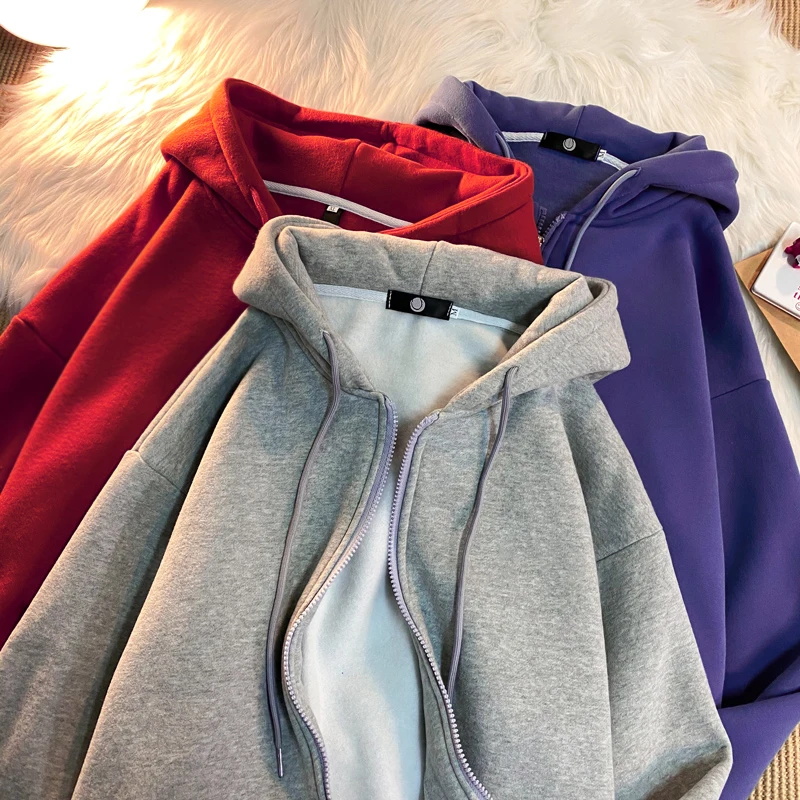 Толстовка Y2k на молнии, Одежда большого размера, корейские модные худи в стиле Харадзюку, Топ с длинным рукавом, осенняя одежда для женщин, толстовки