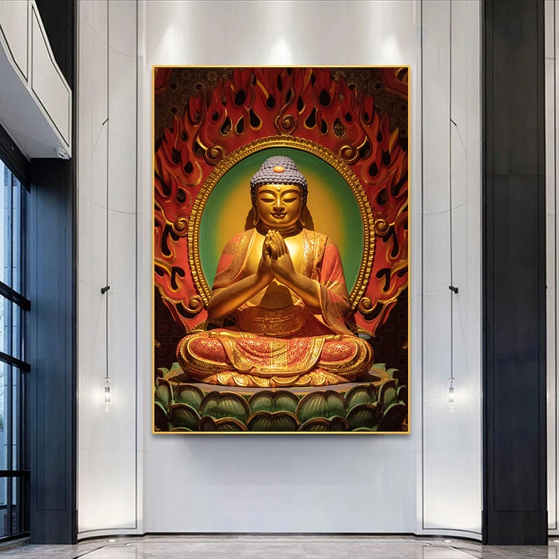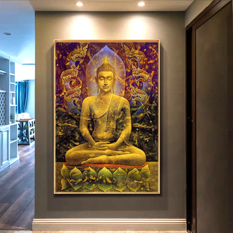 Золотая Статуя Будды, холст, живопись, медитация, плакат Будды, современный буддийский декоративный домашний декор, настенные картины