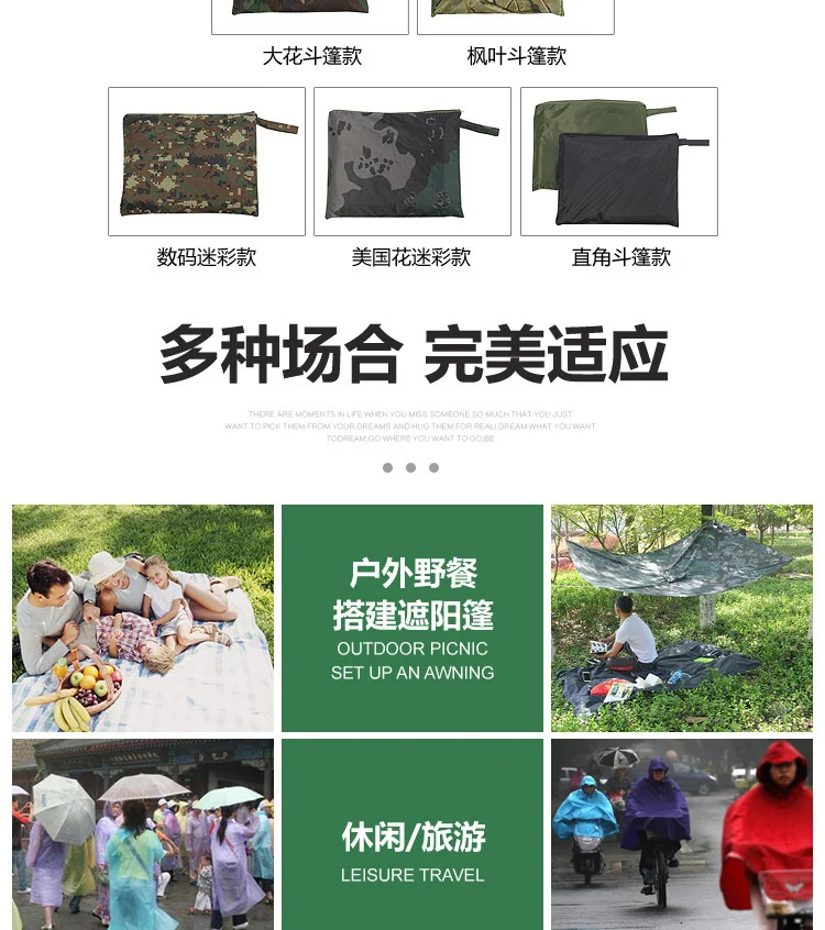Многофункциональный наружный фонарь для кемпинга, брезентовый коврик для пикника, водонепроницаемый дождевой пончо для пешего туризма и кемпинга