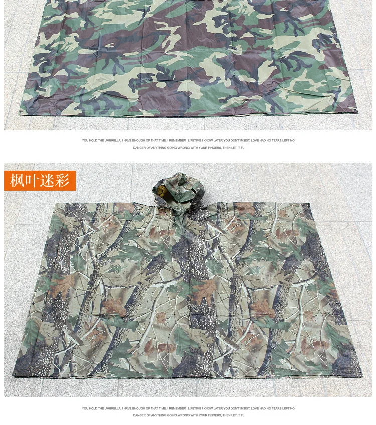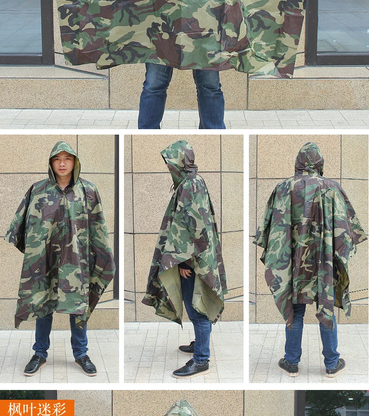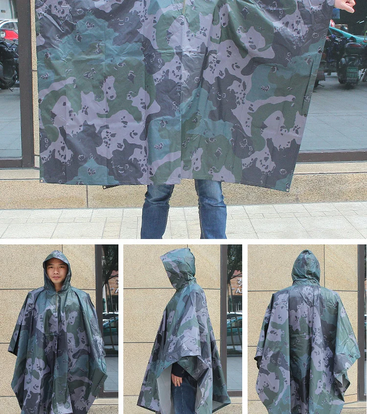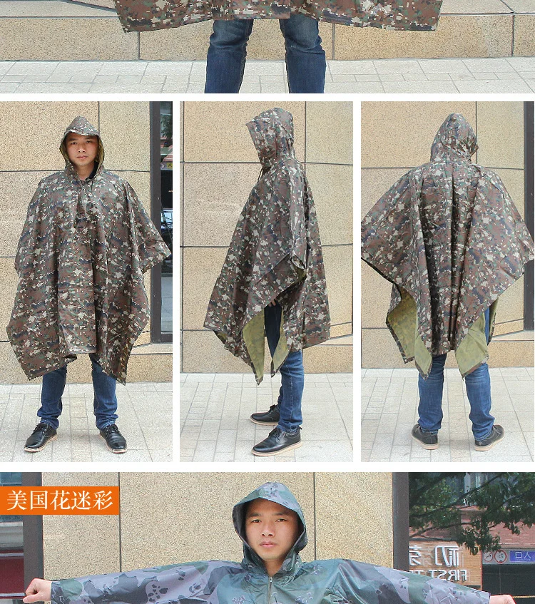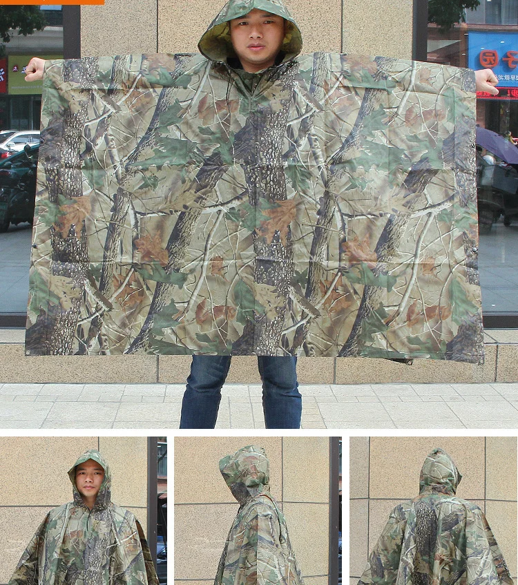 Описание товараМульти-использование военный тактический Водонепроницаемый Рипстоп с капюшоном камуфляж дождевик пончо для мужчин женщин мужчинКамуфляжное пальто в стиле милитари с капюшоном, изготовлено из высококачественного водонепроницаемого нейлона ripstop. Это пончо ripstop является 100% водонепроницаемым и называется ripstop из-за особого переплетения, которое проходит через материал. Изначально это материал военного дизайна, который используется во многих тканях и приложениях. Он также позволяет материалу быть легче, не теряя силы. Многофункциональная вещь имеет люверсы на подоле для использования в качестве укрытия или наземного листа, и нажмите на шпильки с сторон, что позволяет использовать его в качестве чехла для спального мешка или даже пончо.Посылка:1 пончо от дождя1 х подходящая сумкаМатериал: 100% водонепроницаемый нейлон ripstopРазмер: 140х100 смОсобенности:Используйте в качестве аварийного укрытия или спального мешка при использовании d в качестве военного пончо, защищает вас и ваш рюкзак от сильного ветра и дождя, Универсальный простой в носке плащМногоцелевой. Можно не только использовать в качестве плаща, Это тент, влагостойкие коврики, дождевик, укрытие не промокает, меняйте коврики солнечно, с веревкой, чтобы сделать небольшой навес, избегайте солнца.Экологически чистый, нетоксичный, износостойкий, удобный, без расслаивания, в итоге становится старением, водонепроницаемость, эффект камуфляжа очевиден.Различные приложения. Водонепроницаемое пончо идеально подходит для выживания, кемпинга, рыбалки, охоты, военных, тактических и других видов активного отдыха, а также костюмов на Хэллоуин!Теплое напоминаниеВозможна небольшая разница в цвете из-за монитора, камеры или других факторов, пожалуйста, обратитесь к физическому товару.Пожалуйста, ознакомьтесь с измерениями. Небольшая погрешность измерения допустима в нормальном диапазоне.