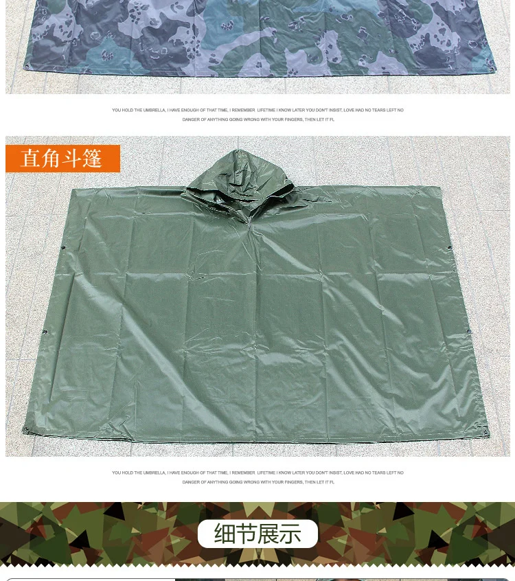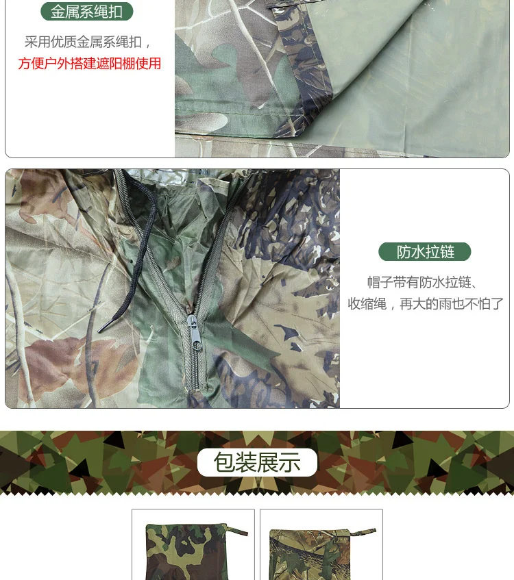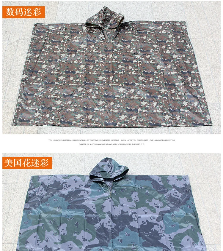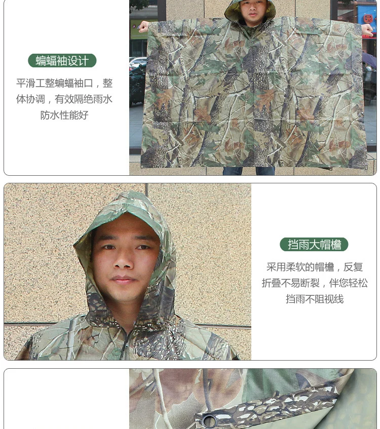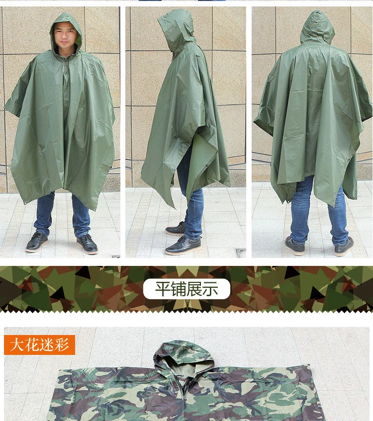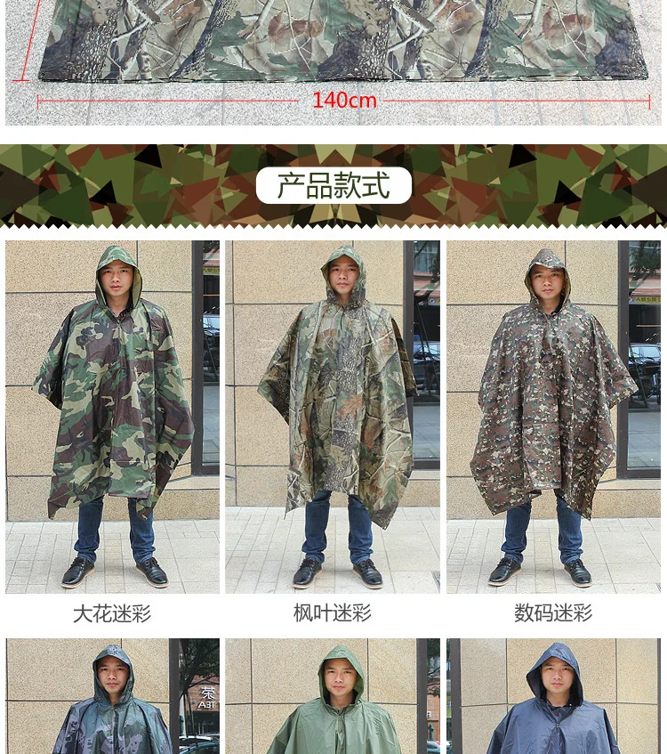 Описание товараМульти-использование военный тактический Водонепроницаемый Рипстоп с капюшоном камуфляж дождевик пончо для мужчин женщин мужчинКамуфляжное пальто в стиле милитари с капюшоном, изготовлено из высококачественного водонепроницаемого нейлона ripstop. Это пончо ripstop является 100% водонепроницаемым и называется ripstop из-за особого переплетения, которое проходит через материал. Изначально это материал военного дизайна, который используется во многих тканях и приложениях. Он также позволяет материалу быть легче, не теряя силы. Многофункциональная вещь имеет люверсы на подоле для использования в качестве укрытия или наземного листа, и нажмите на шпильки с сторон, что позволяет использовать его в качестве чехла для спального мешка или даже пончо.Посылка:1 пончо от дождя1 х подходящая сумкаМатериал: 100% водонепроницаемый нейлон ripstopРазмер: 140х100 смОсобенности:Используйте в качестве аварийного укрытия или спального мешка при использовании d в качестве военного пончо, защищает вас и ваш рюкзак от сильного ветра и дождя, Универсальный простой в носке плащМногоцелевой. Можно не только использовать в качестве плаща, Это тент, влагостойкие коврики, дождевик, укрытие не промокает, меняйте коврики солнечно, с веревкой, чтобы сделать небольшой навес, избегайте солнца.Экологически чистый, нетоксичный, износостойкий, удобный, без расслаивания, в итоге становится старением, водонепроницаемость, эффект камуфляжа очевиден.Различные приложения. Водонепроницаемое пончо идеально подходит для выживания, кемпинга, рыбалки, охоты, военных, тактических и других видов активного отдыха, а также костюмов на Хэллоуин!Теплое напоминаниеВозможна небольшая разница в цвете из-за монитора, камеры или других факторов, пожалуйста, обратитесь к физическому товару.Пожалуйста, ознакомьтесь с измерениями. Небольшая погрешность измерения допустима в нормальном диапазоне.