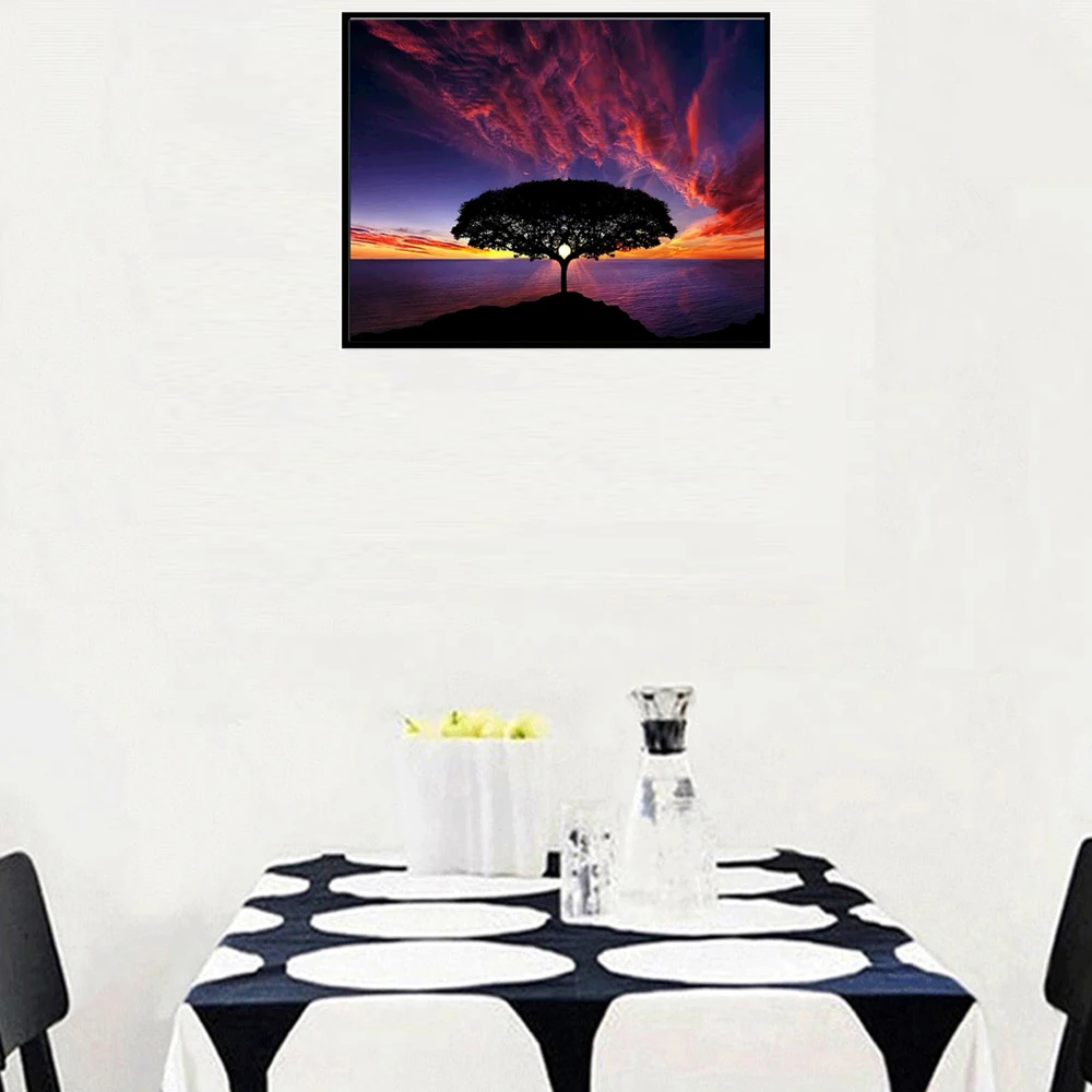 Алмазная 5D картина сделай сам, круглые алмазы, закат, пейзаж, карт...