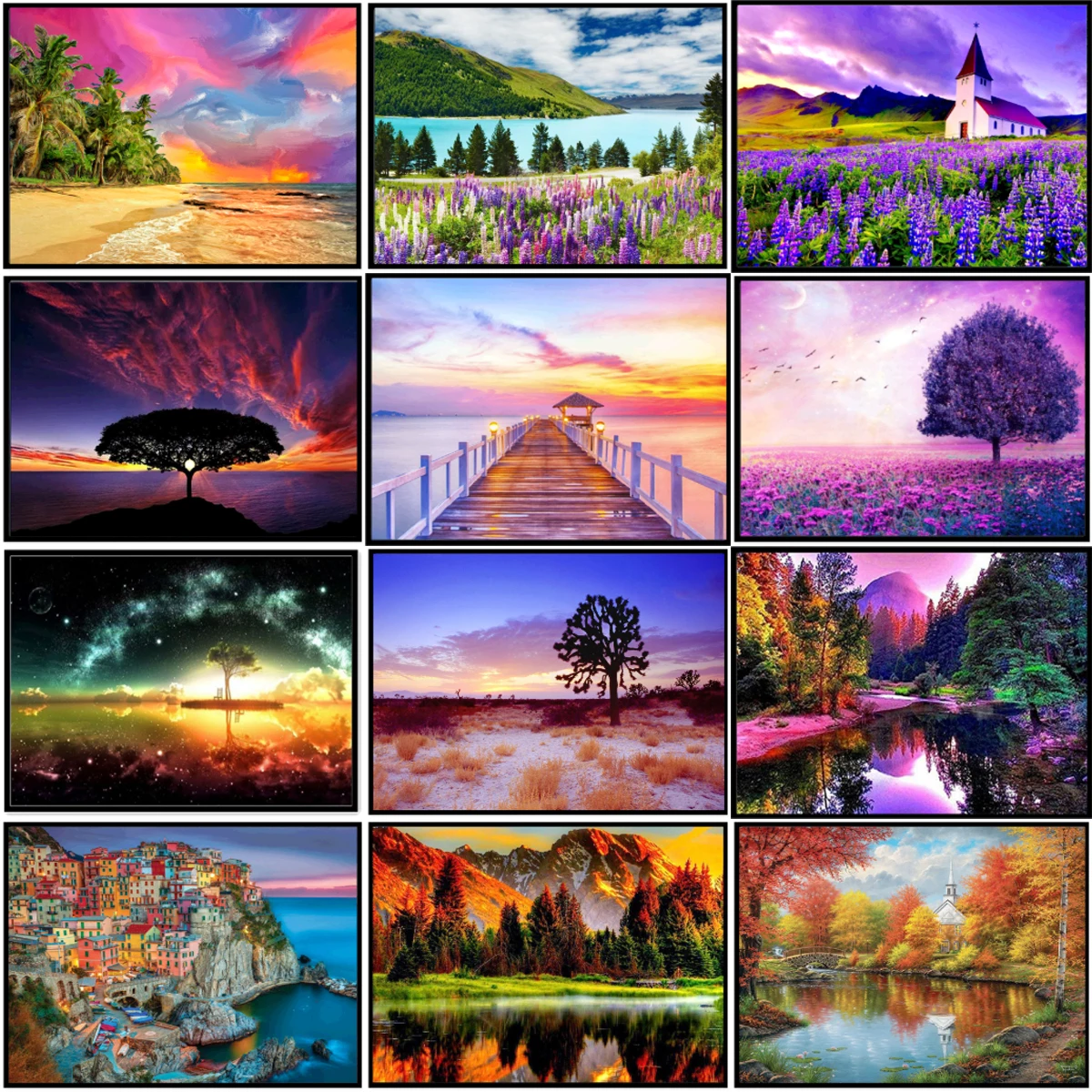 Diy алмазная живопись пейзаж живопись 5d полный набор алмазной выши...