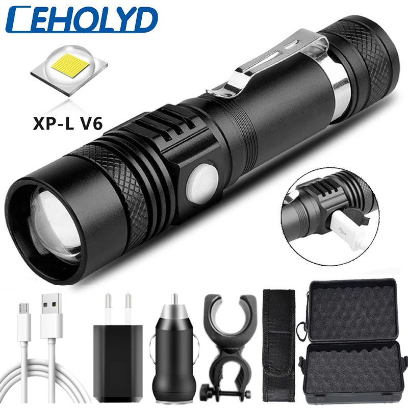 Велосипедная светодиодная вспышка speedv6 XP-L U3 T6, USB Перезаряжаемый масштабируемый алюминиевый фонарь, аккумулятор 18650, фонарь для рыбалки