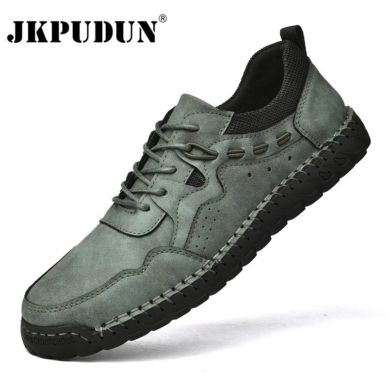 Мужские кожаные ботинки JKPUDUN, зимние водонепроницаемые ботинки н...