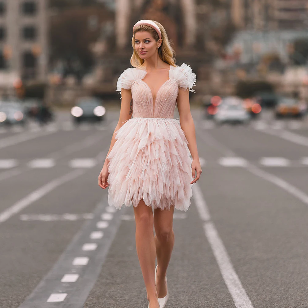 Красивое Тюлевое короткое платье с оборками для выпускного вечера, новое дизайнерское розовое коктейльное платье с открытой спиной, одежда для вечеринки, платье на день рождения для девочек, изготовление на заказ