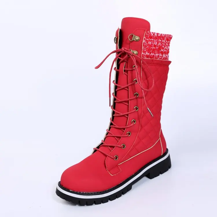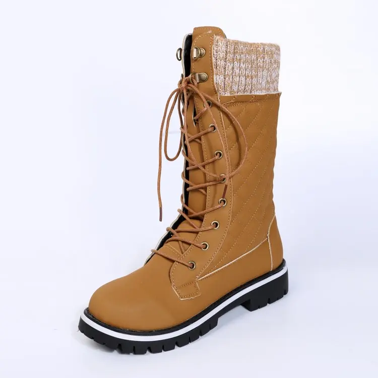 Женские сапоги до середины икры, Женская хлопковая обувь на шнуровк...
