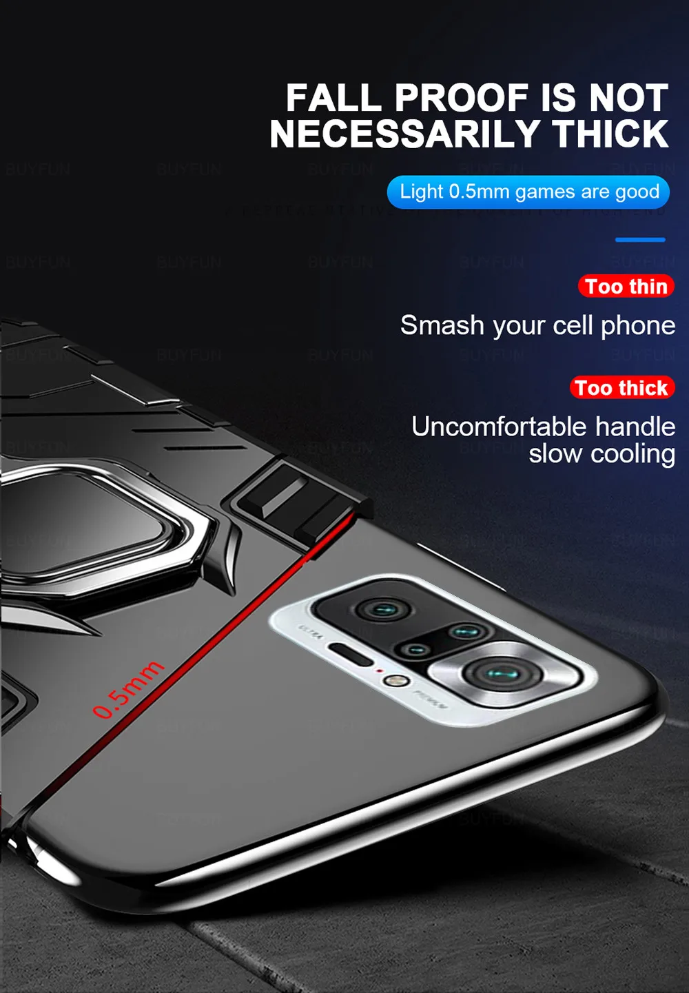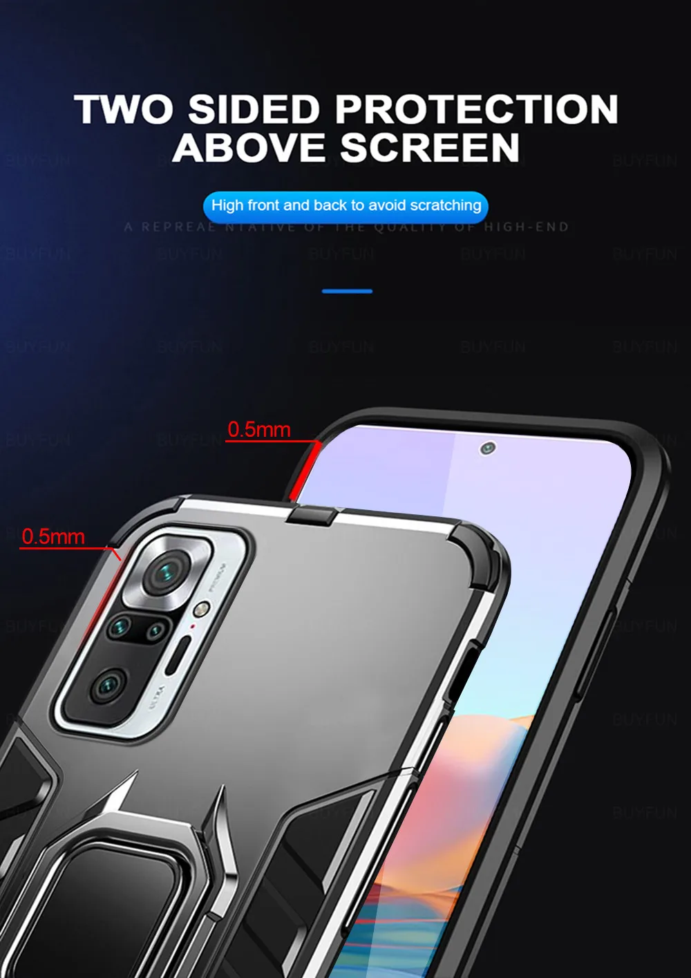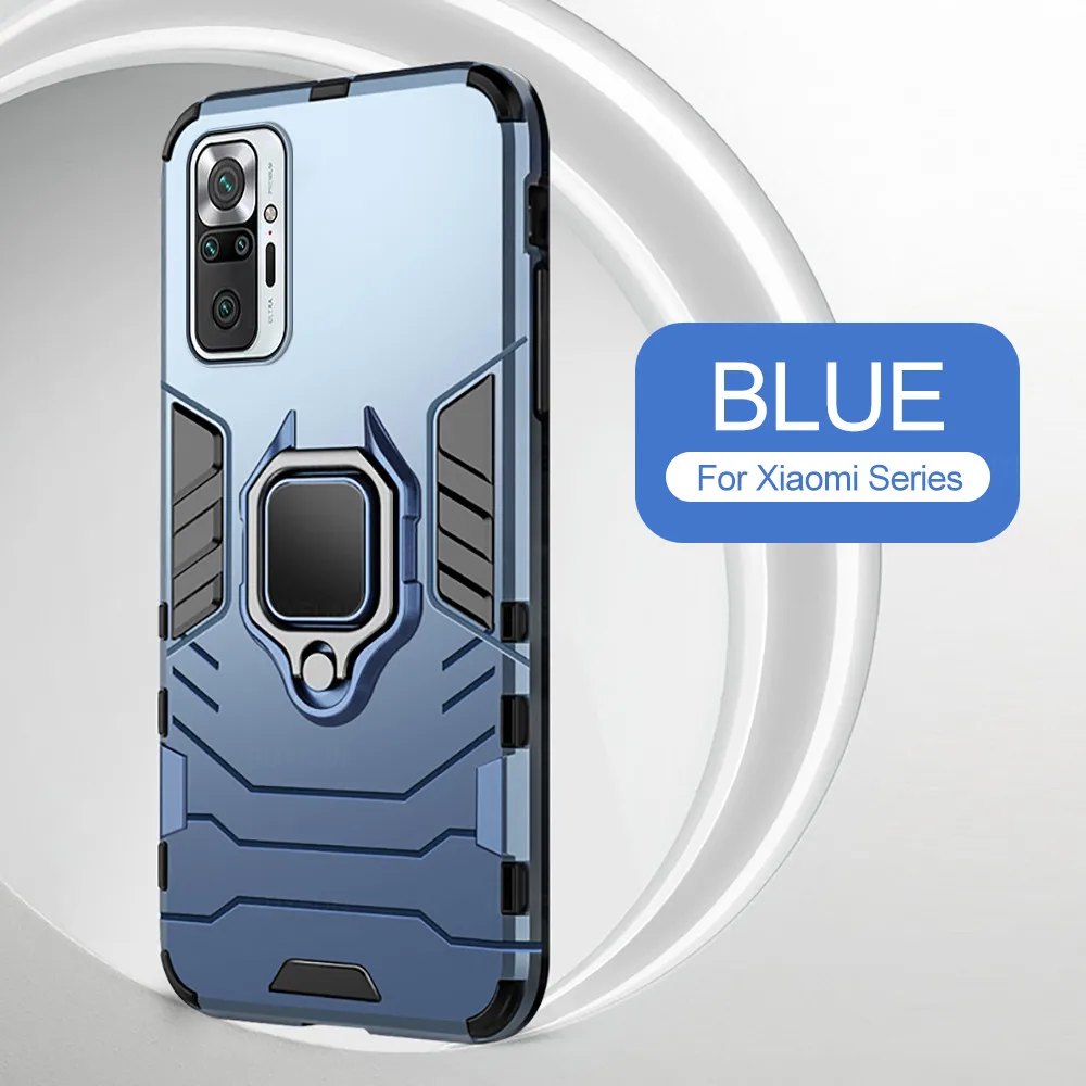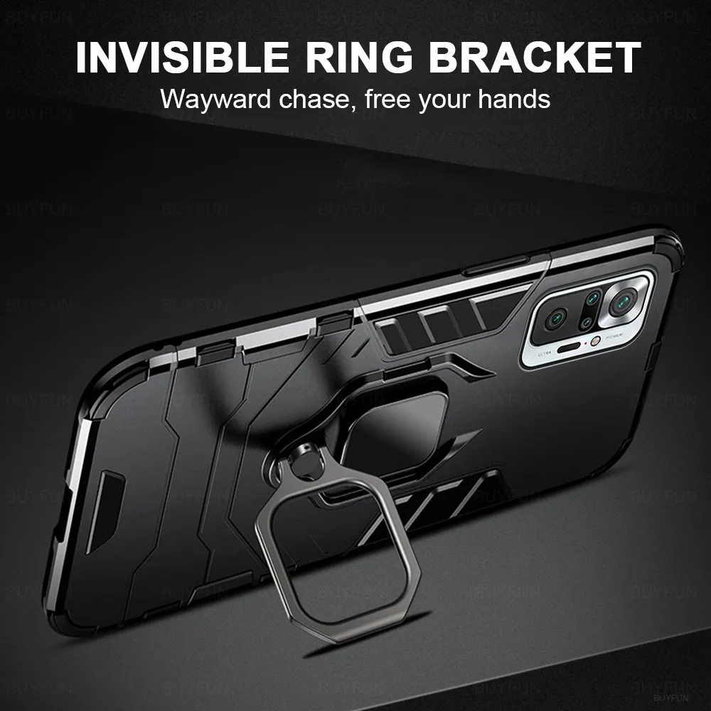 Бронированный противоударный чехол с кольцом-держателем для Xiaomi Redmi Note 10 Pro 10S 10pro 9T 9S 9 8T 8 2021 7A 8A 9A 9C NFC Note10