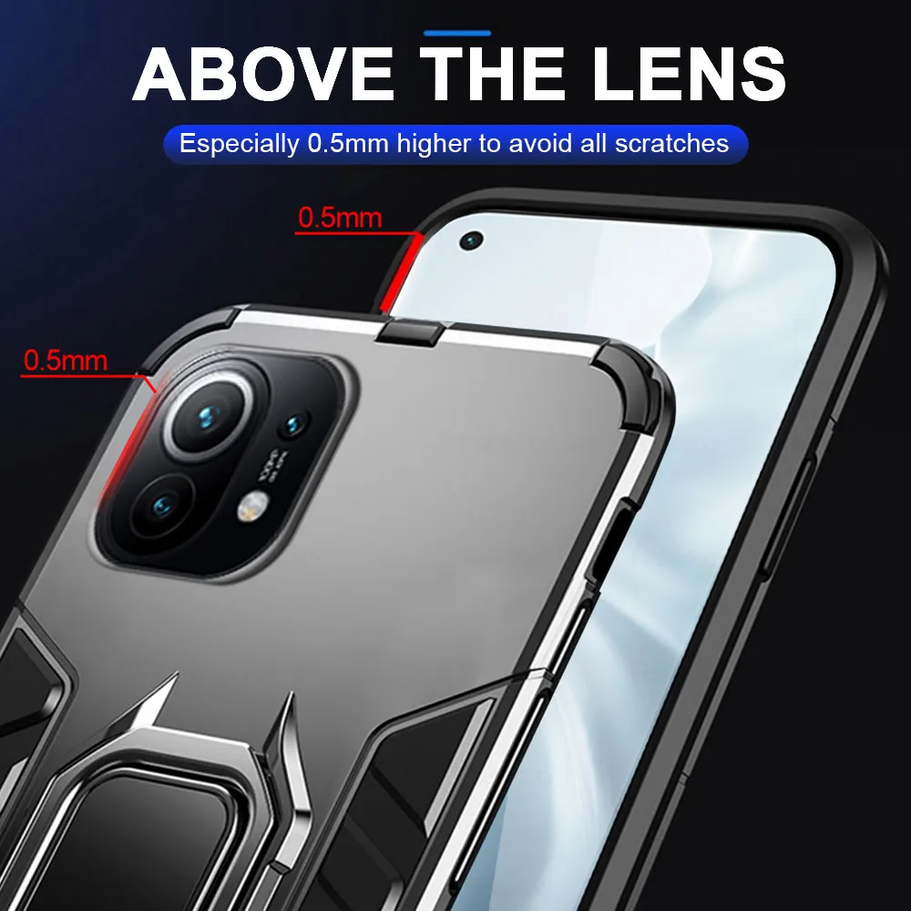 3D кольцо-держатель, бронированный противоударный чехол для телефона Xiaomi Mi 11 Lite 11i 11pro 11ultra 11lite 5G Mi11 Pro, ультрамагнитный чехол