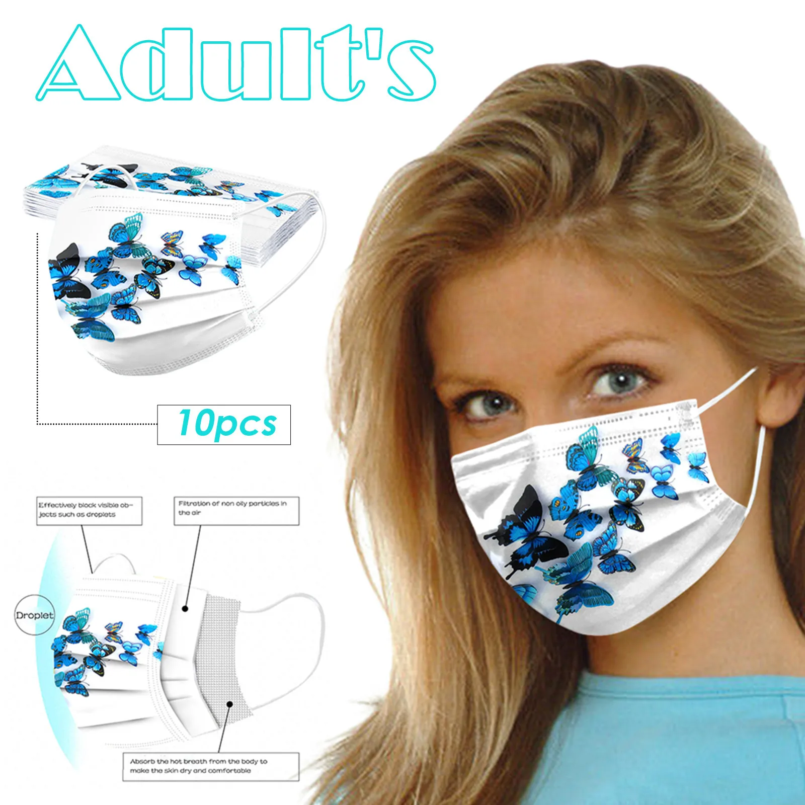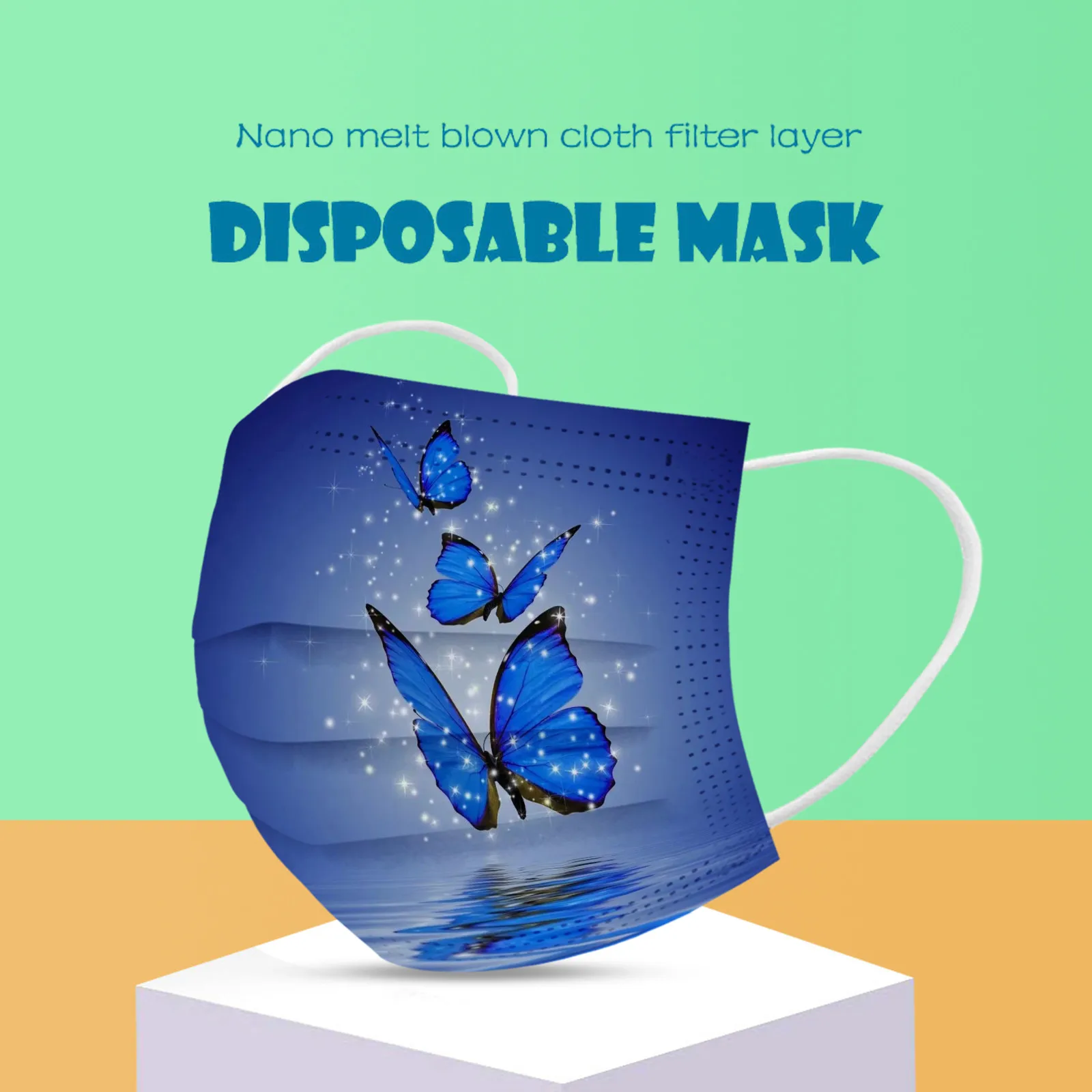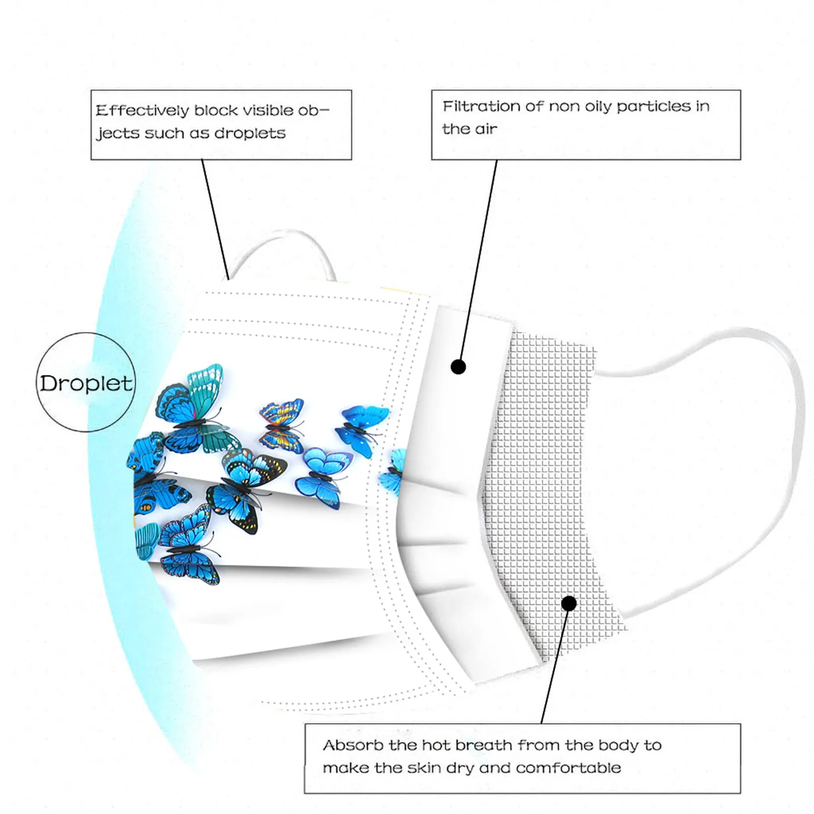 В Одноразовая маска изготовлена из 3 слоев нетканого материала, Безопасен и безопасен для использования. Дышащий материал и красивый Узоры, которые делают его полезным и модным. Специальный 3 слоя из нетканого материала Дизайн, обеспечивает некоторую защиту от пыли, автомобильных выхлопных газов, Пыльца и т. д. эластичная Ушная петля, легко носить и не давит на уши.