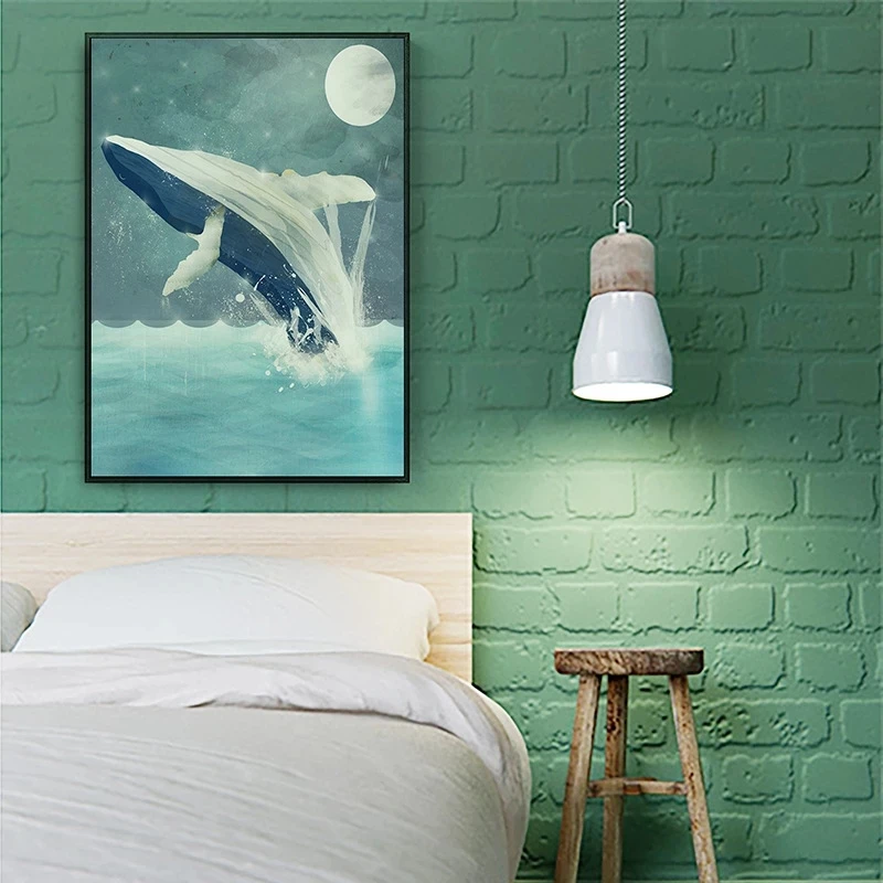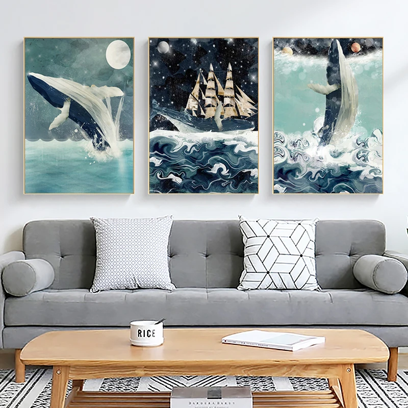 Скандинавская искусственная акварель, морская фотография, Настенная картина для гостиной, домашнее украшение, рисунок КИТ на холсте