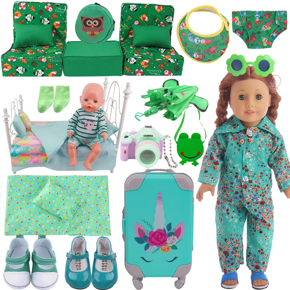 Аксессуары для кукол мебель диван-кровать подкладка Пижама для ребенка-реборн 43 см, 18 дюймов кукольная одежда для девочек обувь, чемодан с единорогом Бесплатная доставка