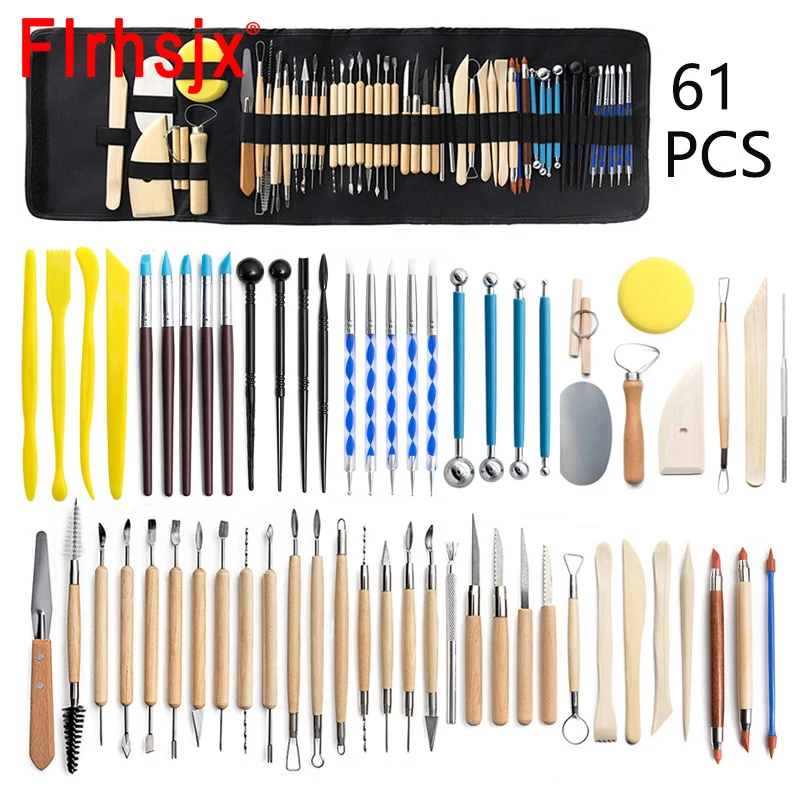 61 шт.компл. Набор для лепки из глины, скульптурный набор, сглаживающая восковая резьба, керамика, полимерные Шейперы, моделирующий резной керамический инструмент сделай сам