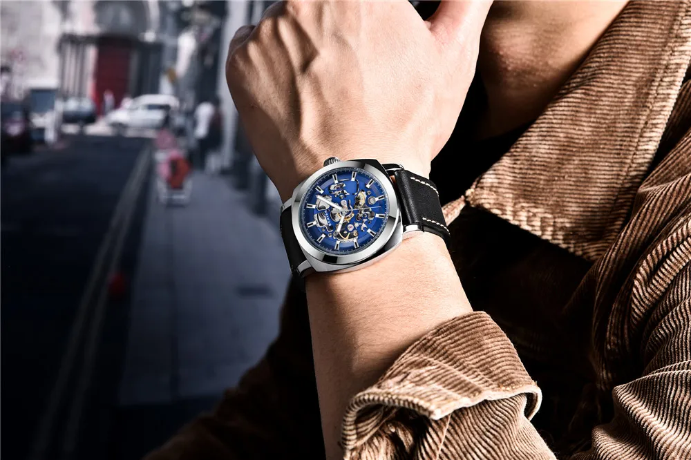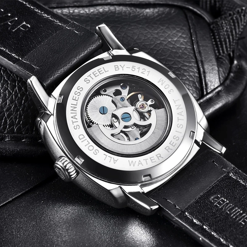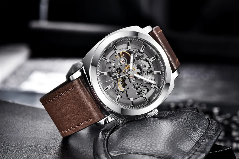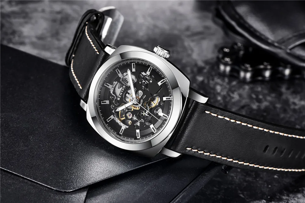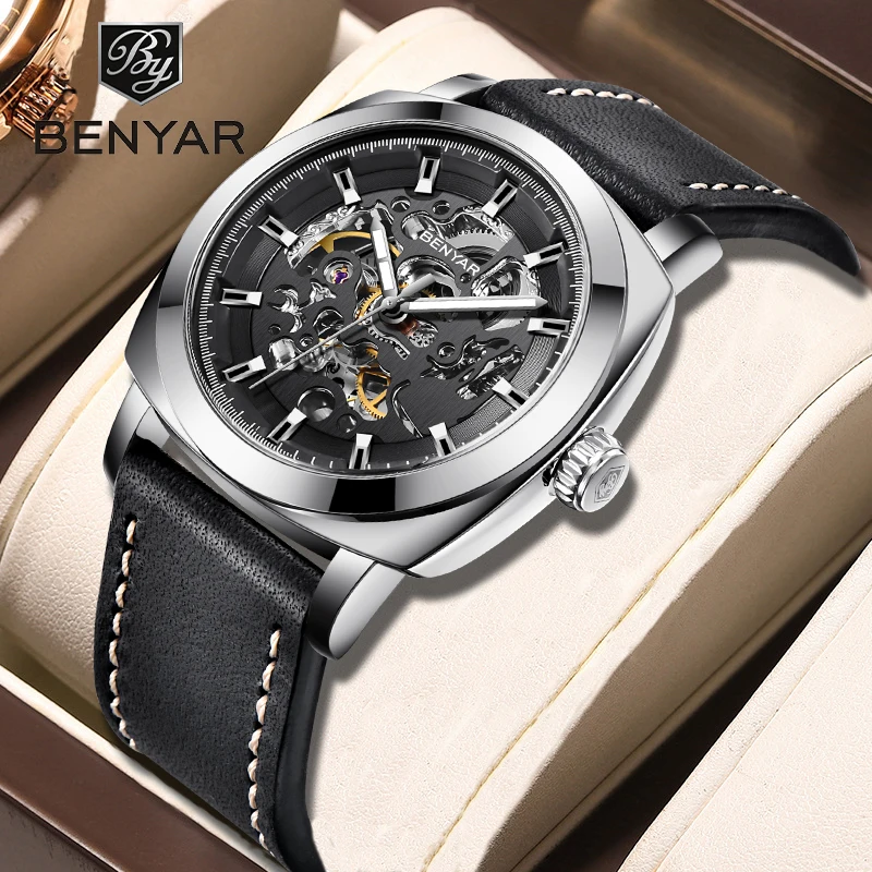 Мужские автоматические часы BENYAR, водонепроницаемые, с полым циферблатом из нержавеющей стали, 45 мм