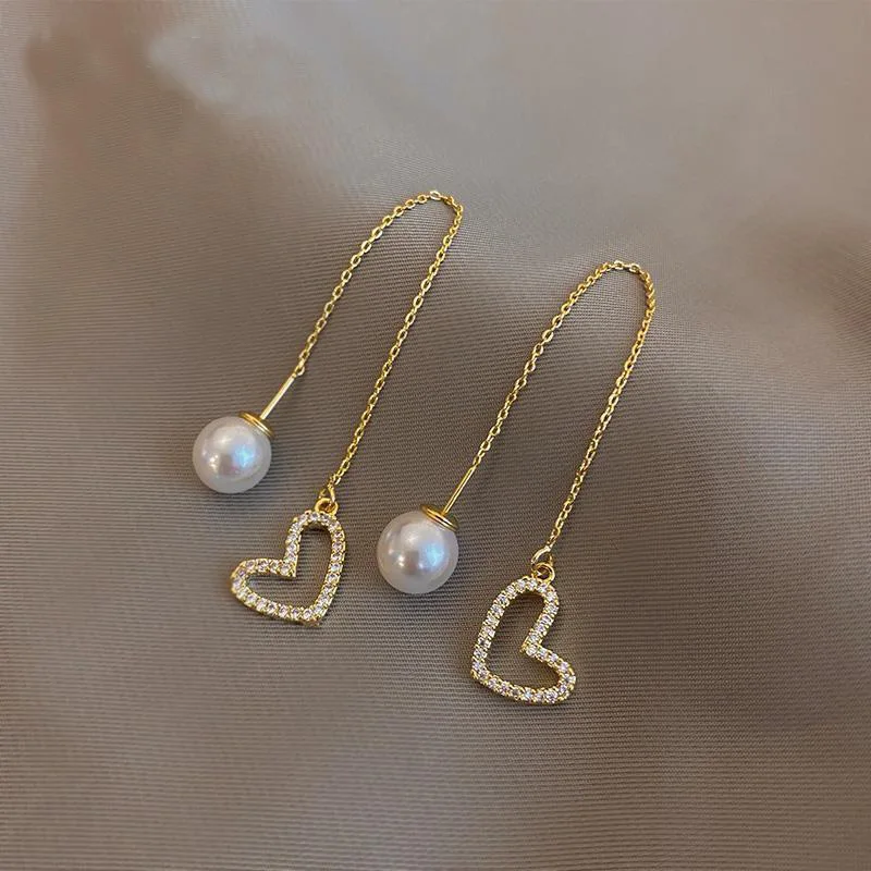 Новинка 2021, Классическая жемчужная подвеска, Персиковое сердце, Love, моделирующая линия уха, Женская Вечерние, висячие серьги для девушек