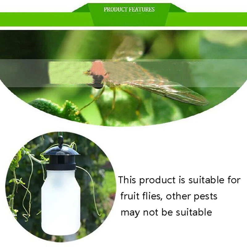 Особенности:100% новый и высокое качествоПрактичная головка-ловушка, используемая с бутылками для минеральной воды, широко используемая на рынке, простая в использовании, очевидный эффект, более экономичная. Это хороший выбор для дома, фермы, сада.Аттрактант фруктовых мух: в основном используется для фруктовых мух, бактроцера дорсалиса и пчелиных пчел, привозимых фруктовыми деревьями и растениями дыни