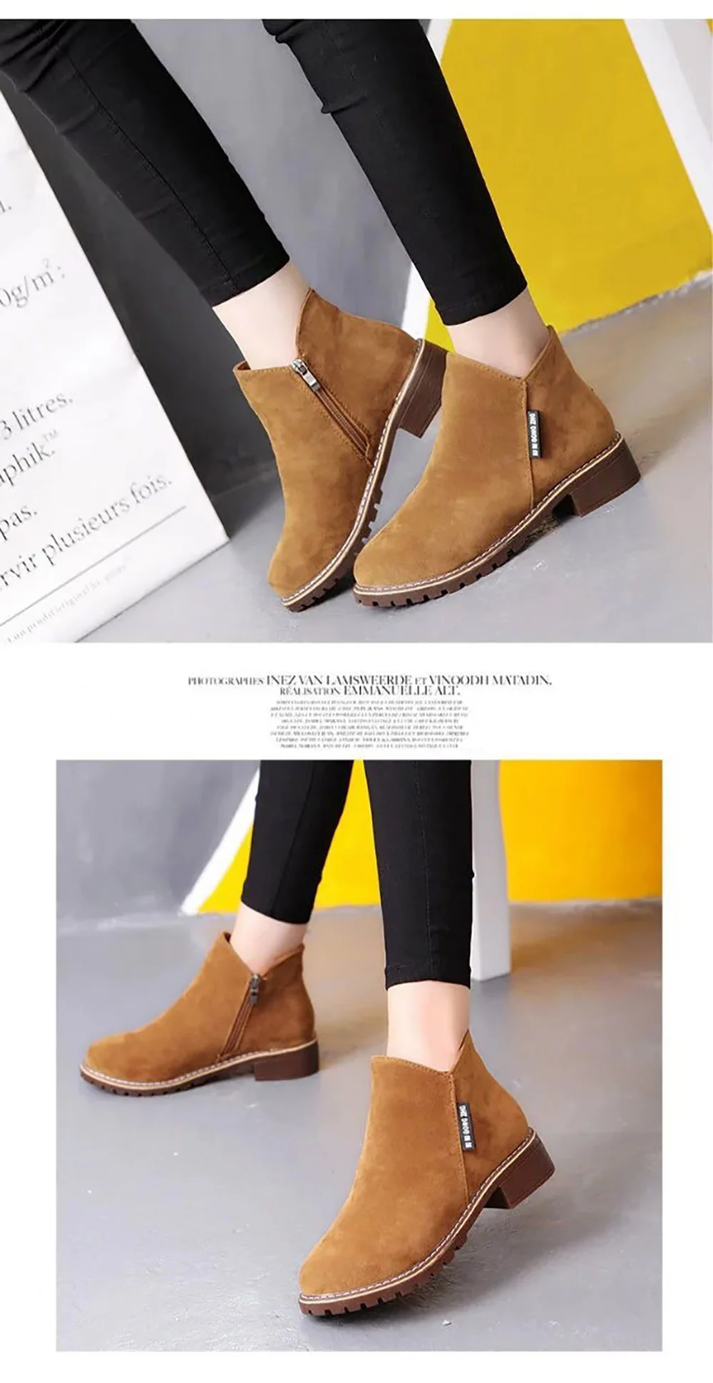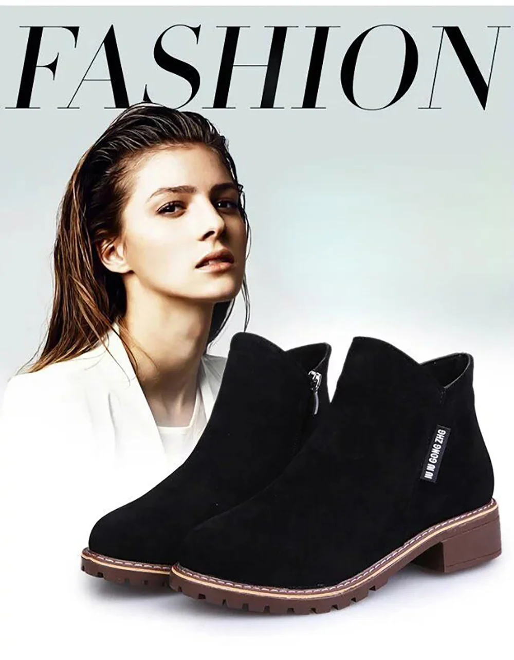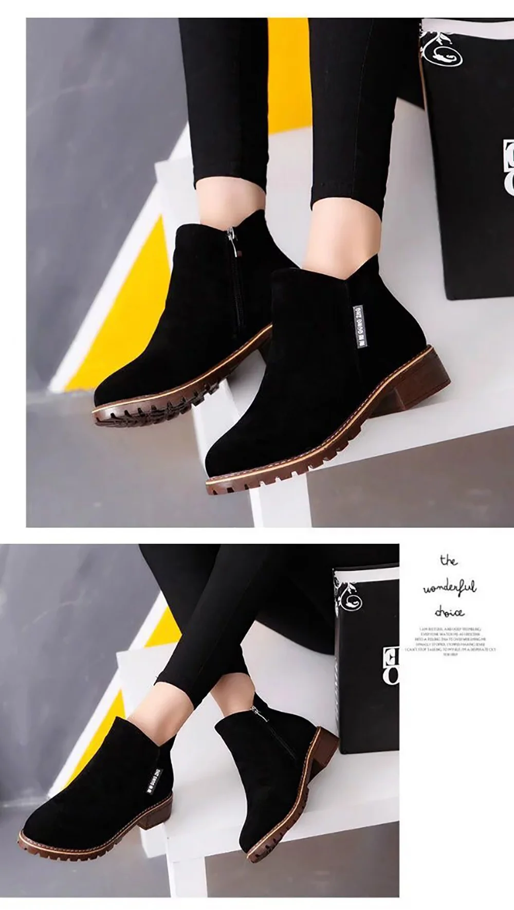 Новые женские ботильоны; Сезон осень-зима; Классические зимние ботильоны на молнии; Зимняя женская обувь из замши с теплым мехом и плюшем
