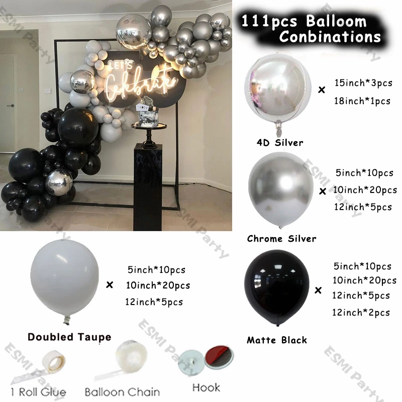 111 шт (11 футов) набор воздушных шаров Упаковочный лист: