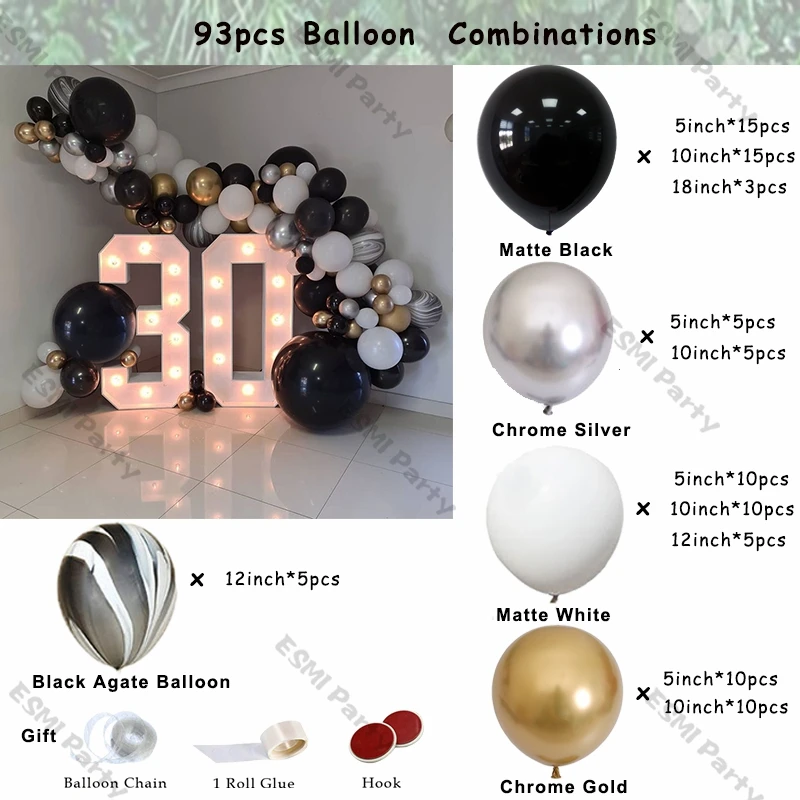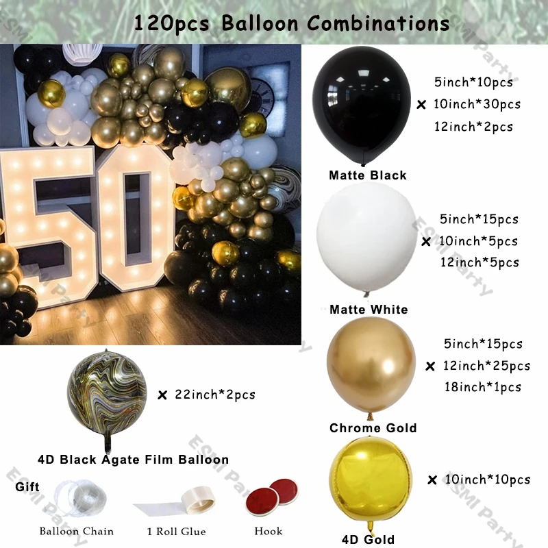 ColorMatte Black,Matte White,Chrome Gold,Marble Aluminum Foil Balloon