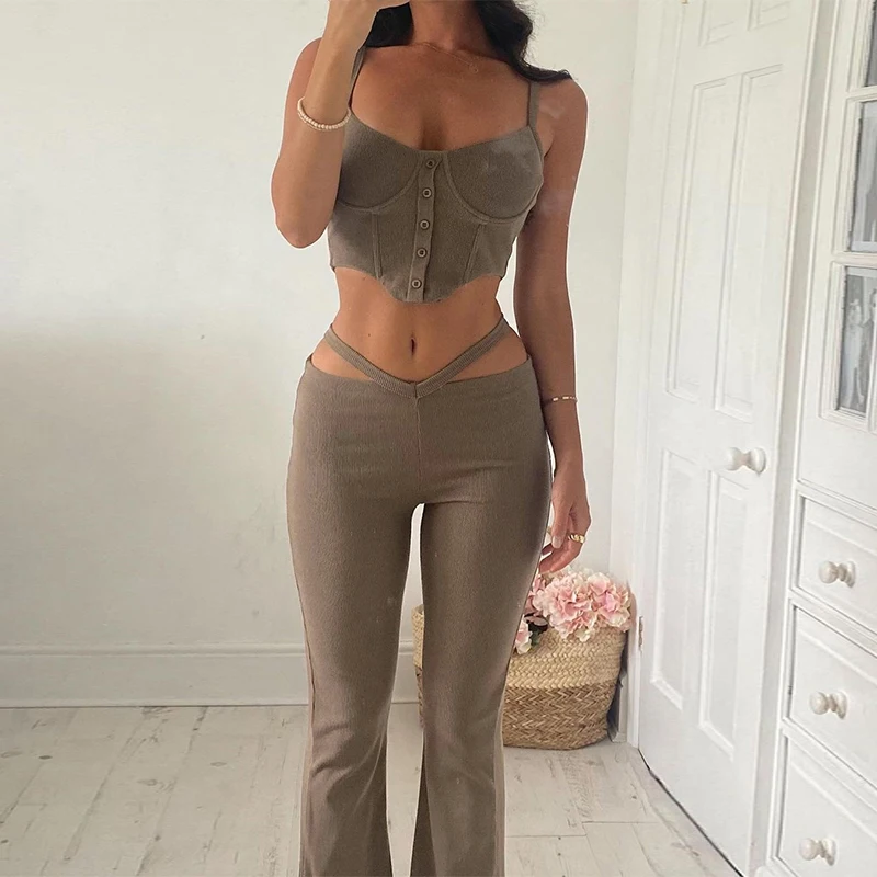Соблазнительный корсет, милая кофта на пуговицах, облегающие кроп-топы и ажурные Брюки, осень 2021, трикотажная одежда в рубчик Y2K, одежда для гранжа