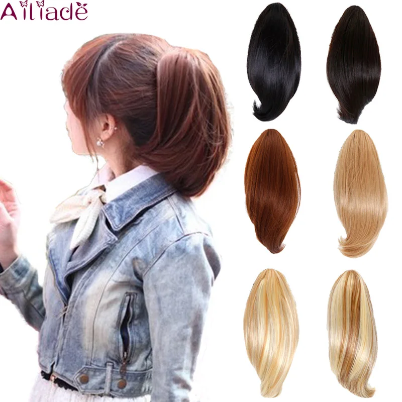 AILIADE Короткие прямые Конские хвосты с зажимом для наращивания волос Блонд черный синтетические волосы маленький конский хвост высокая температура Fibe