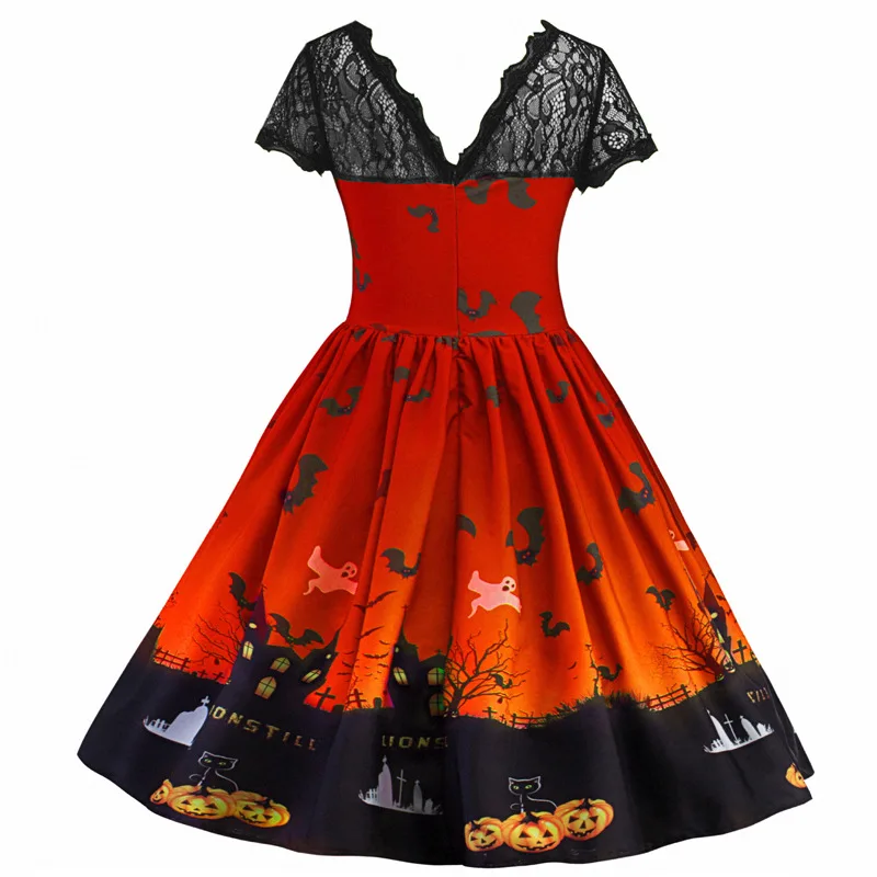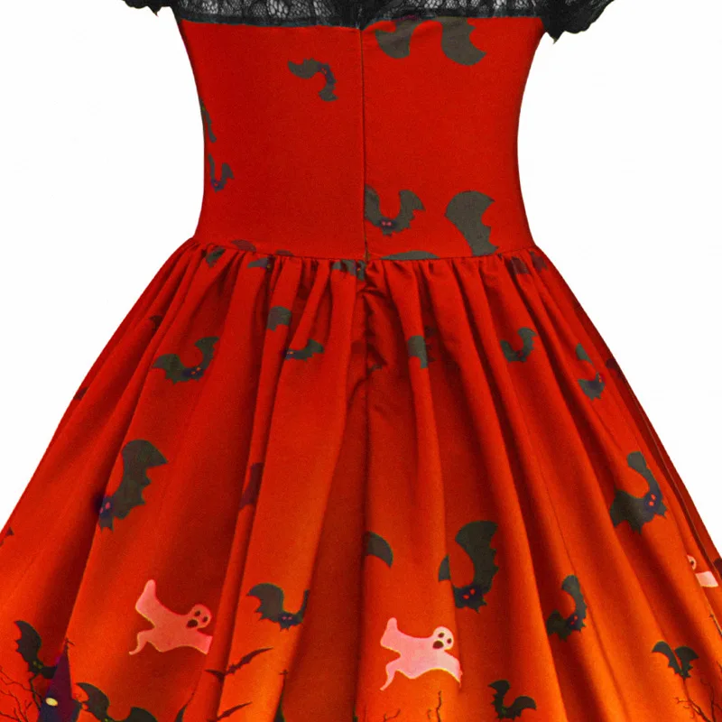 Новинка 2021, платье для девочек с рисунком на Хэллоуин, повседневные кружевные платья принцессы для детской вечеривечерние, детская одежда, подарок на день рождения