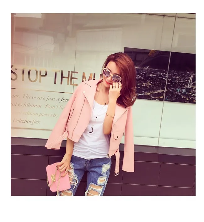 Женская короткая байкерская куртка Za, розовая байкерская куртка из...