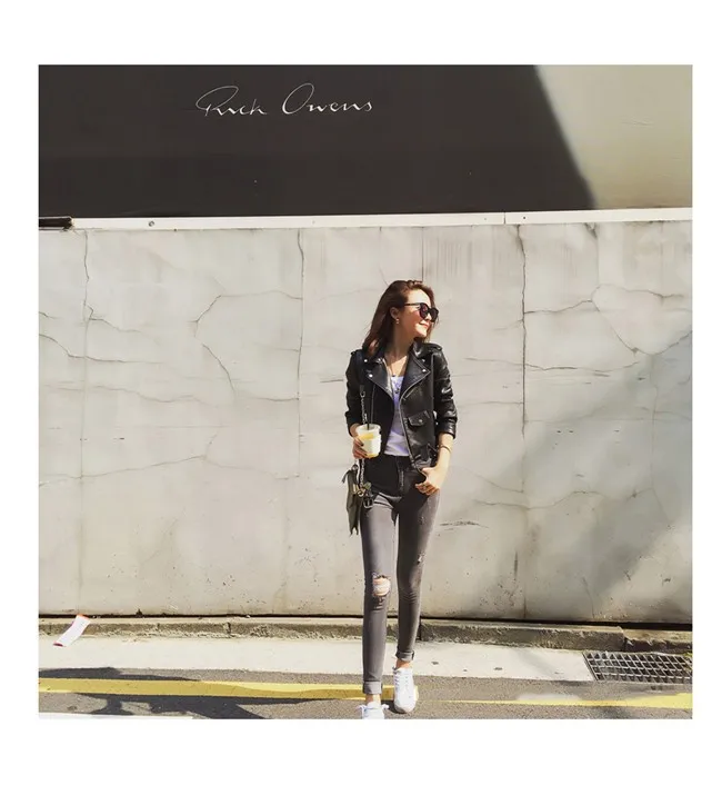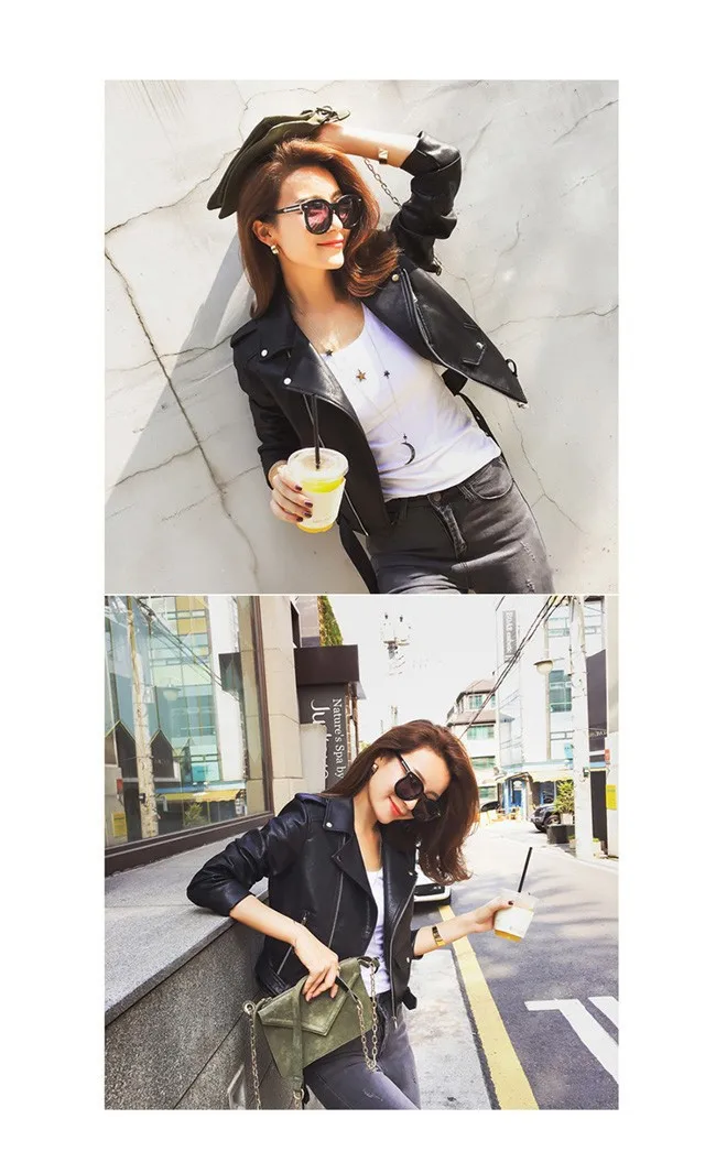 Зимняя женская черная кожаная куртка 2019, повседневные женские баз...
