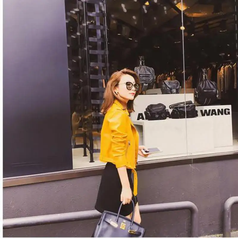 Куртка WEIHAOBANG женская короткая из экокожи, однотонная Повседневная Свободная короткая мотоциклетная куртка с отложным воротником, поясом на молнии и длинным рукавом, 2021