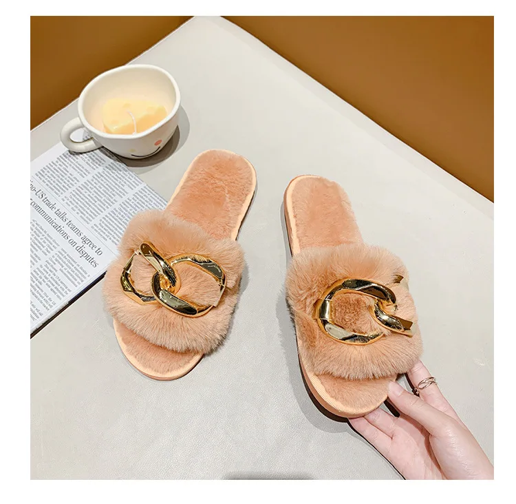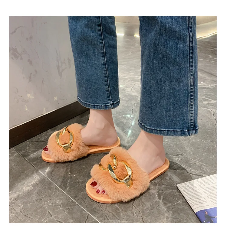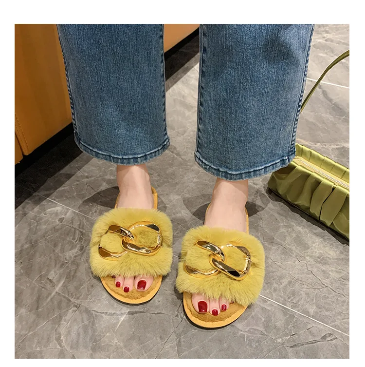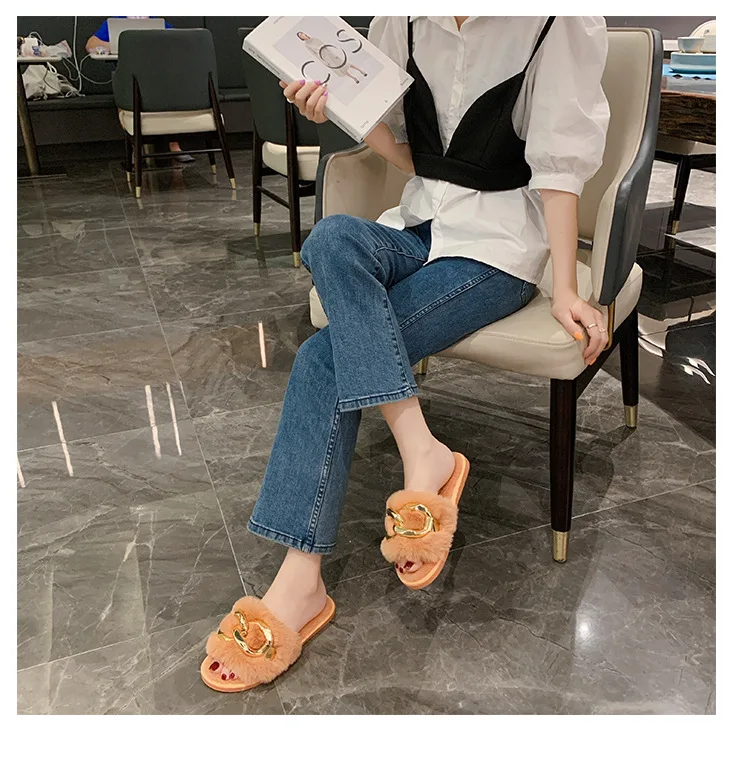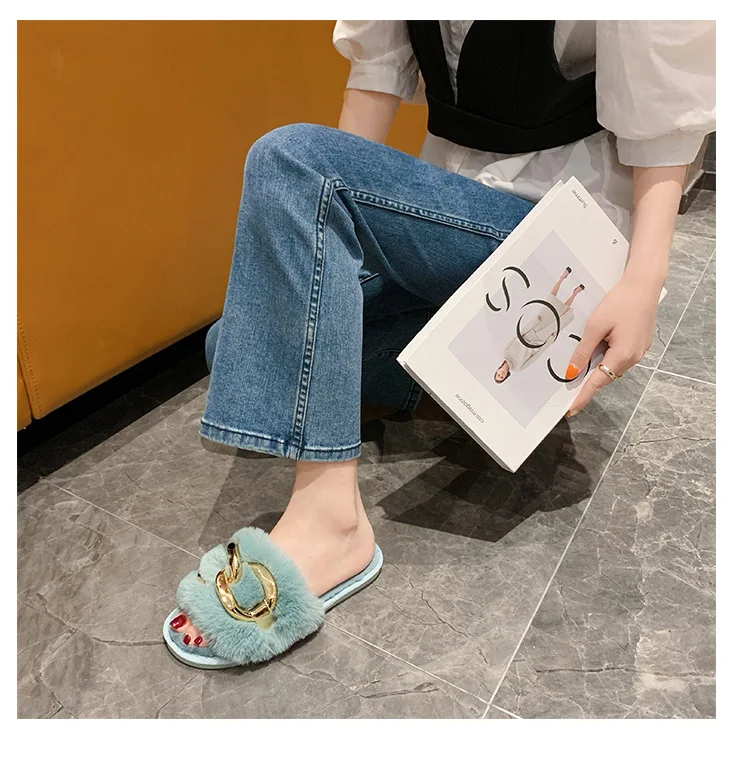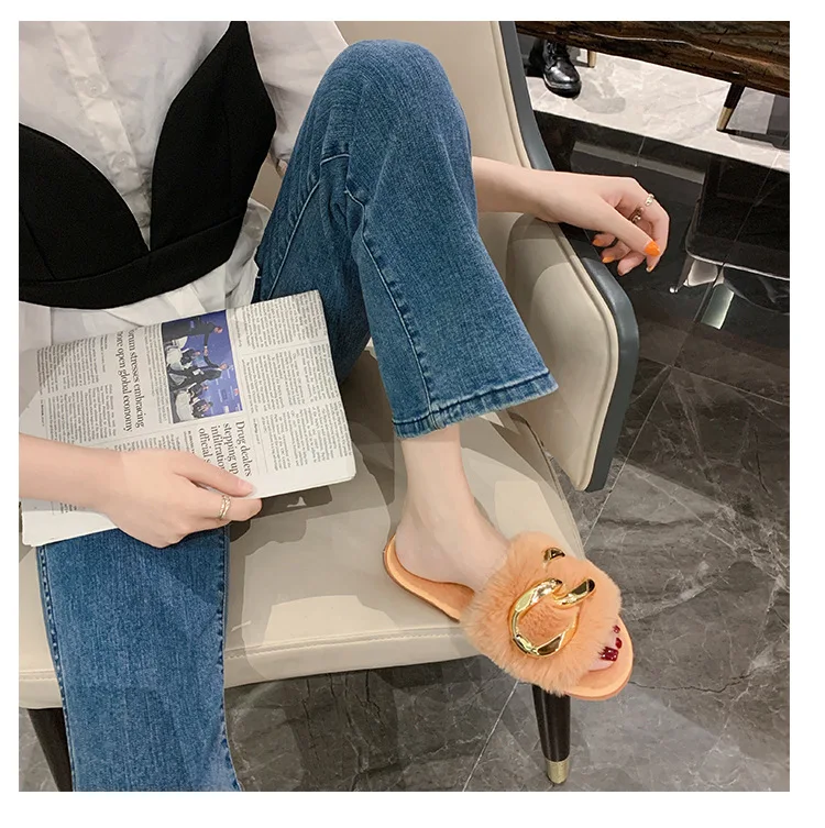 Летние пушистые симпатичные меховые тапочки, женская обувь, женские...