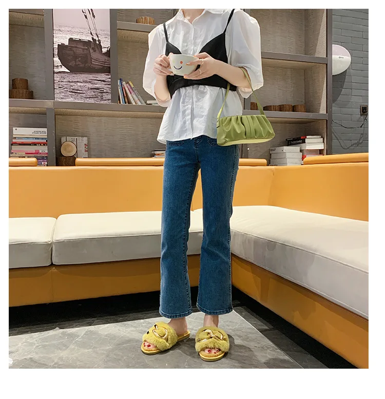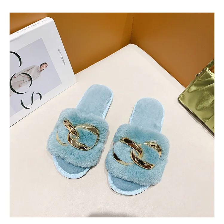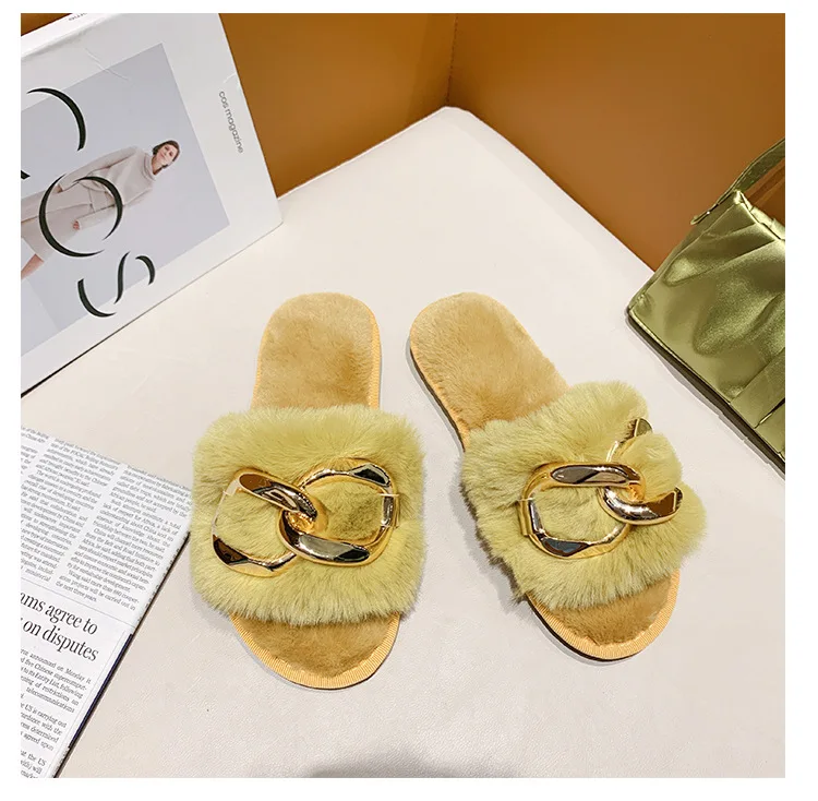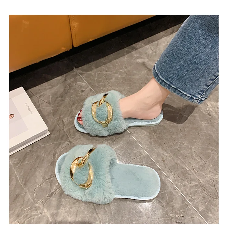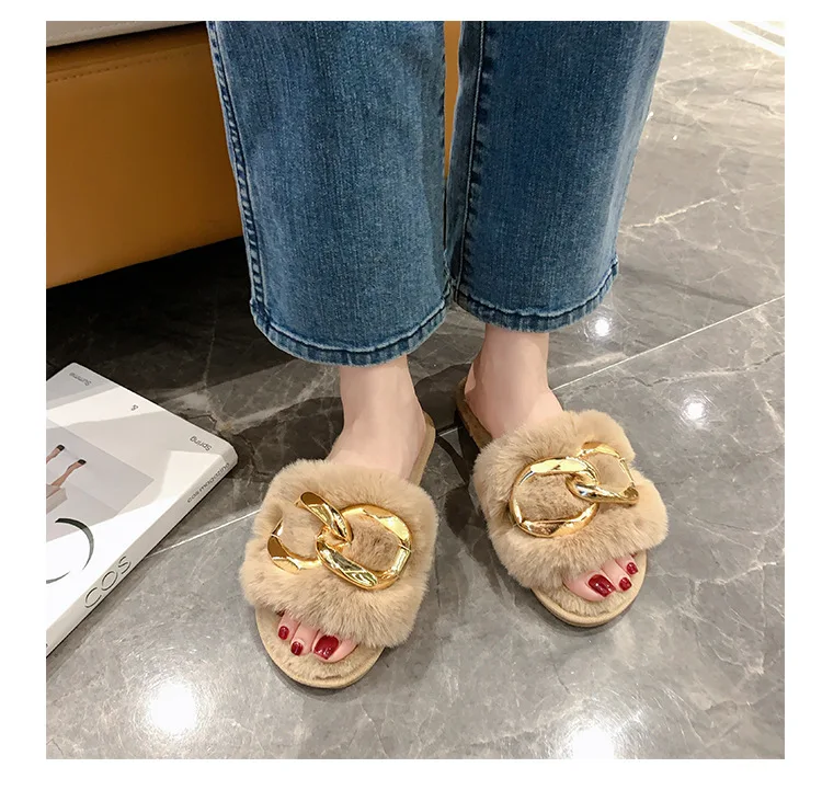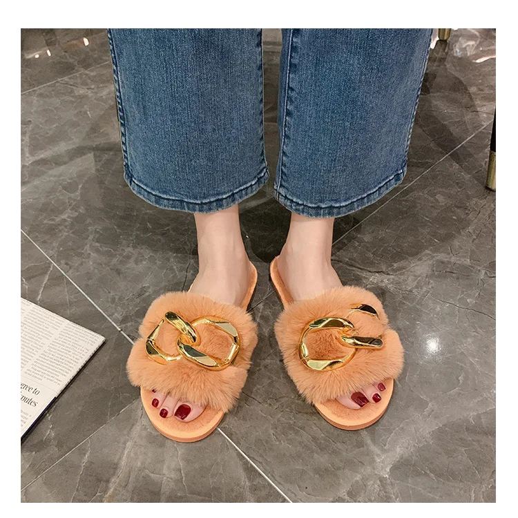 Летние пушистые симпатичные меховые тапочки, женская обувь, женские...