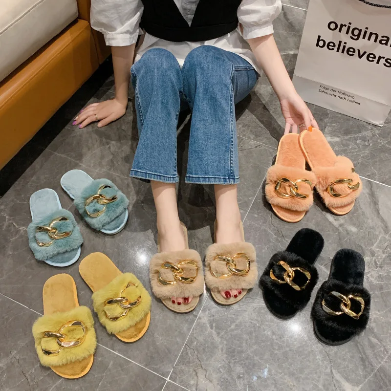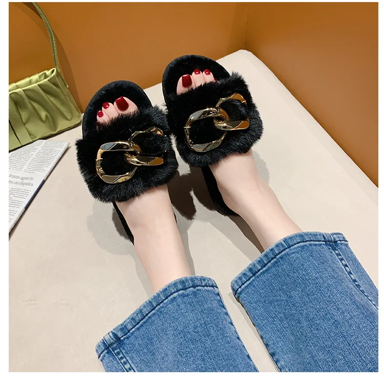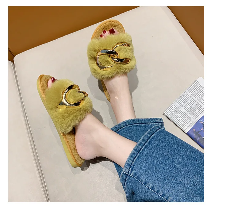 2021 Осенняя обувь, меховые зимние тапочки, женские пушистые теплые...