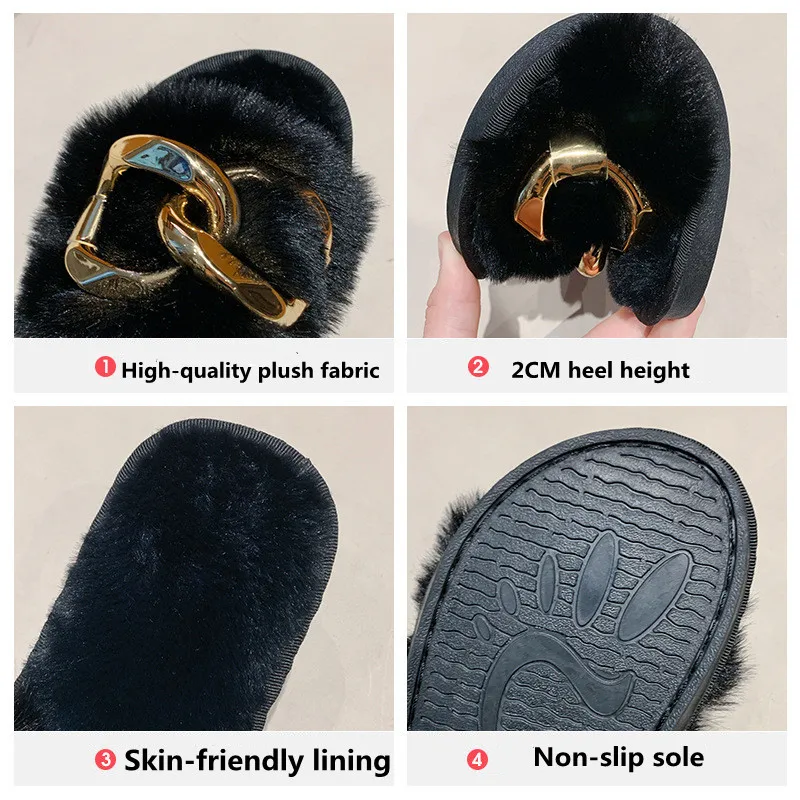 Шлепанцы женские зимние водонепроницаемые, меховые плюшевые шлепанц...