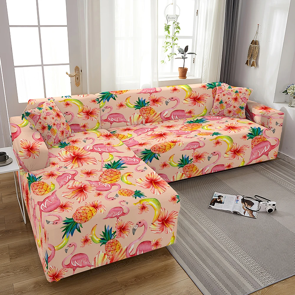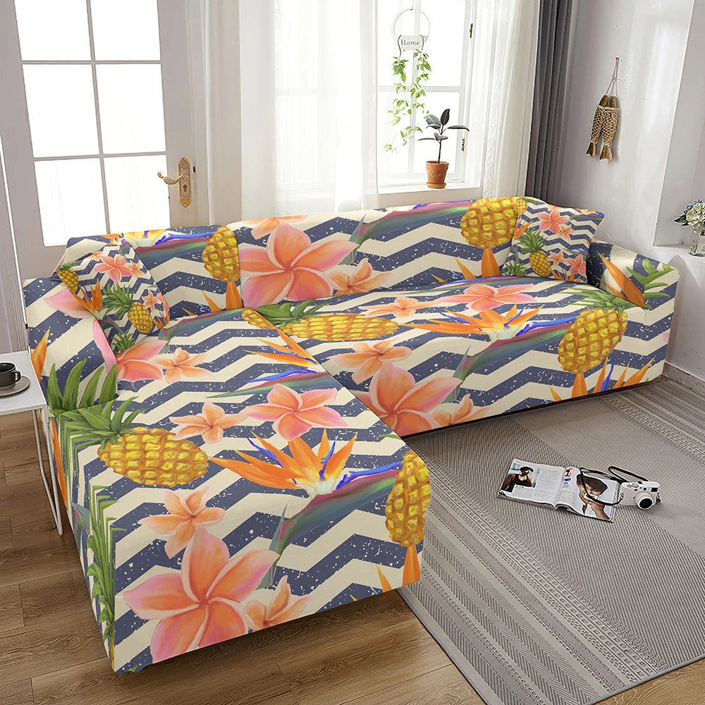 Чехол для углового дивана с тропическими листьями, эластичный чехол...