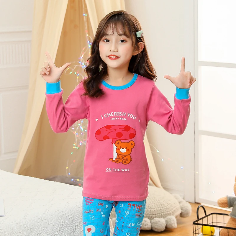 Пижама детская розовая с длинным рукавом, на веснуосень