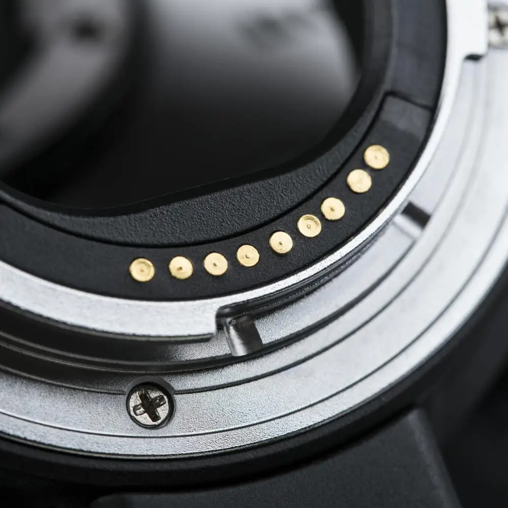 Прочная конструкция для сверхмощного использования-литой сердечник из цинкового сплава с отсоединяемой металлической подставкой. Гарантированная производительность-все контактные контакты сделаны из меди, а затем гальванизированы золотом для наибольшей проводимости все детали сделаны в жесткой форме допуска, что делает адаптер для длительного и удобного использования. Электронный Автофокус. Фокусировка бесконечно. Высокотехническая обработка контактных контактов, что позволяет передавать идеальный сигнал между объективом и камерой. Поддерживает существующую функцию объектива. С отверстием для штатива 1/4 ''. Материал: литье под давлением из цинкового сплава с отстегивающейся металлической подставкой. Поставляется с передней и задней крышками.