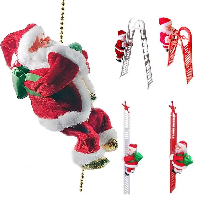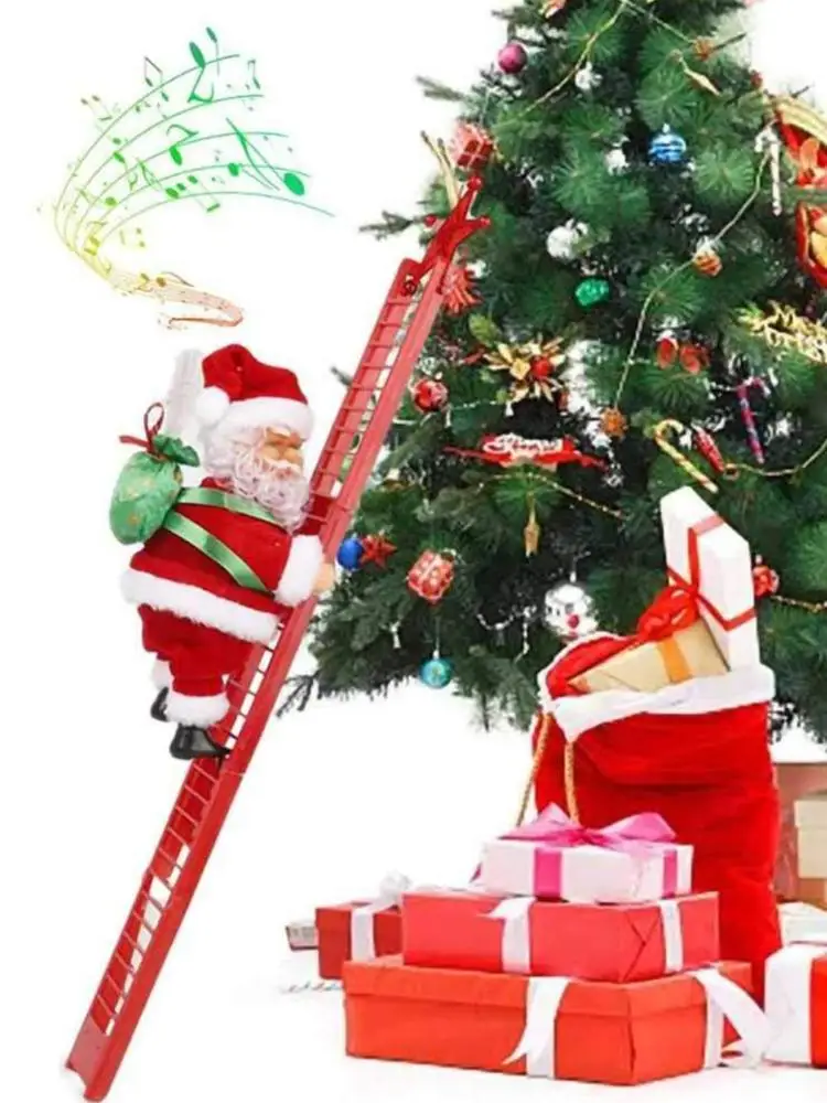 Новый рождественский Электрический Санта-Клаус, лестница для скалолазания, рождественские подарки, плюшевая Новинка, музыка, детский Декор на день рождения, игрушка для вечеринки, куклы, подарок K1N6
