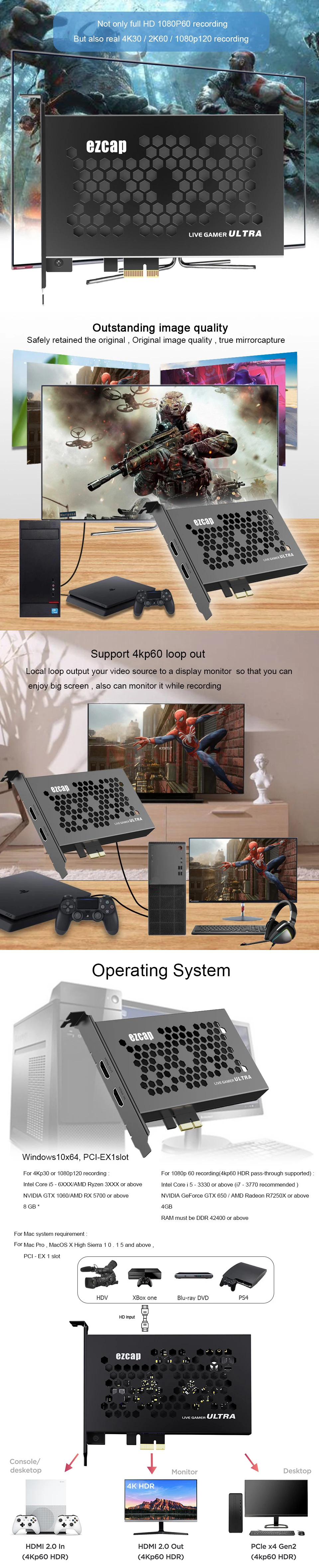 Ezcap323 пластина HDMI видео игровая доска переключатель карты захвата 4k 60fps HDR PCIE HDMI видео Захват ТВ тюнер запись для ноутбука ПК